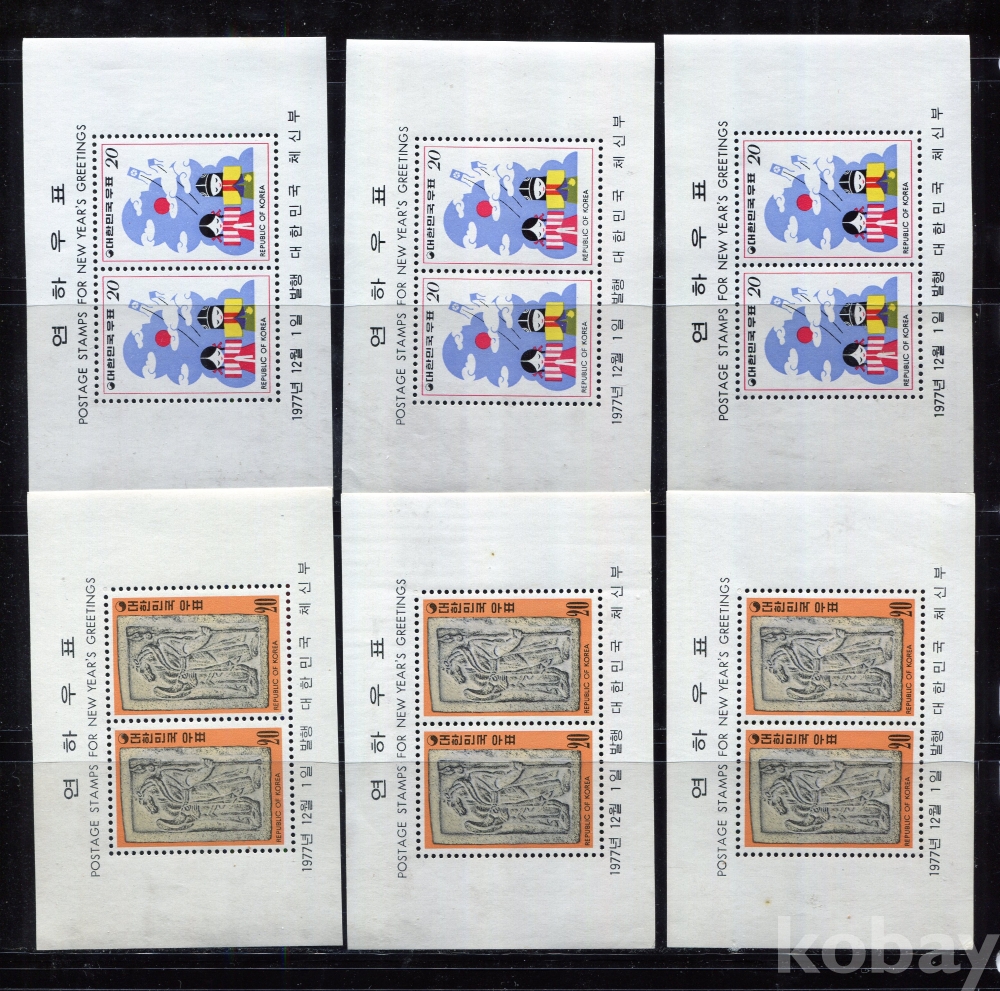 - [연하시트] 1977년 미사용 연하시트 3매 (All MNH : Mint Not Hinged) : 이미지 참조하세요