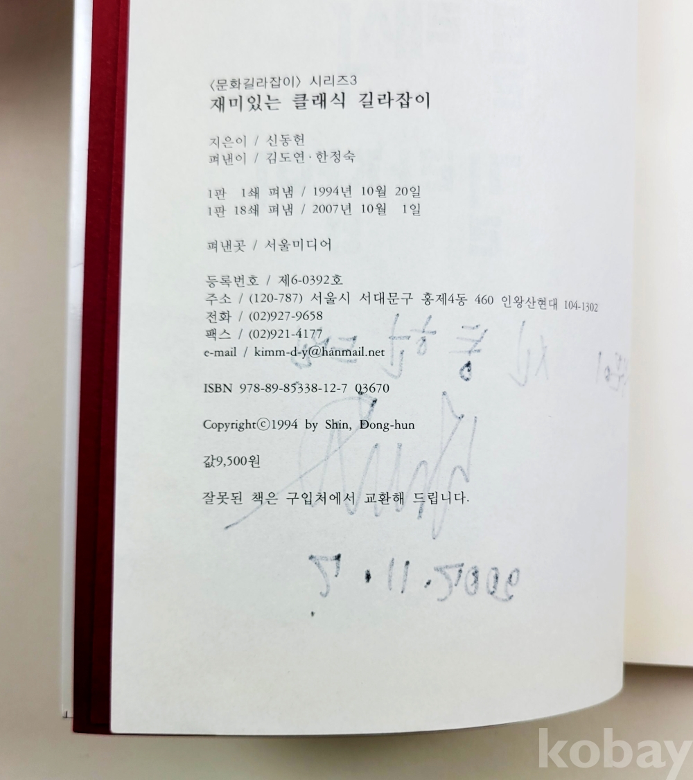 물 품 명 | [친필사인본] 신동헌 : 신동우 화백 친형 / 재미있는 클래식 길라잡이(만화삽화 + 문안) / 2007년 / 서울미디어 |