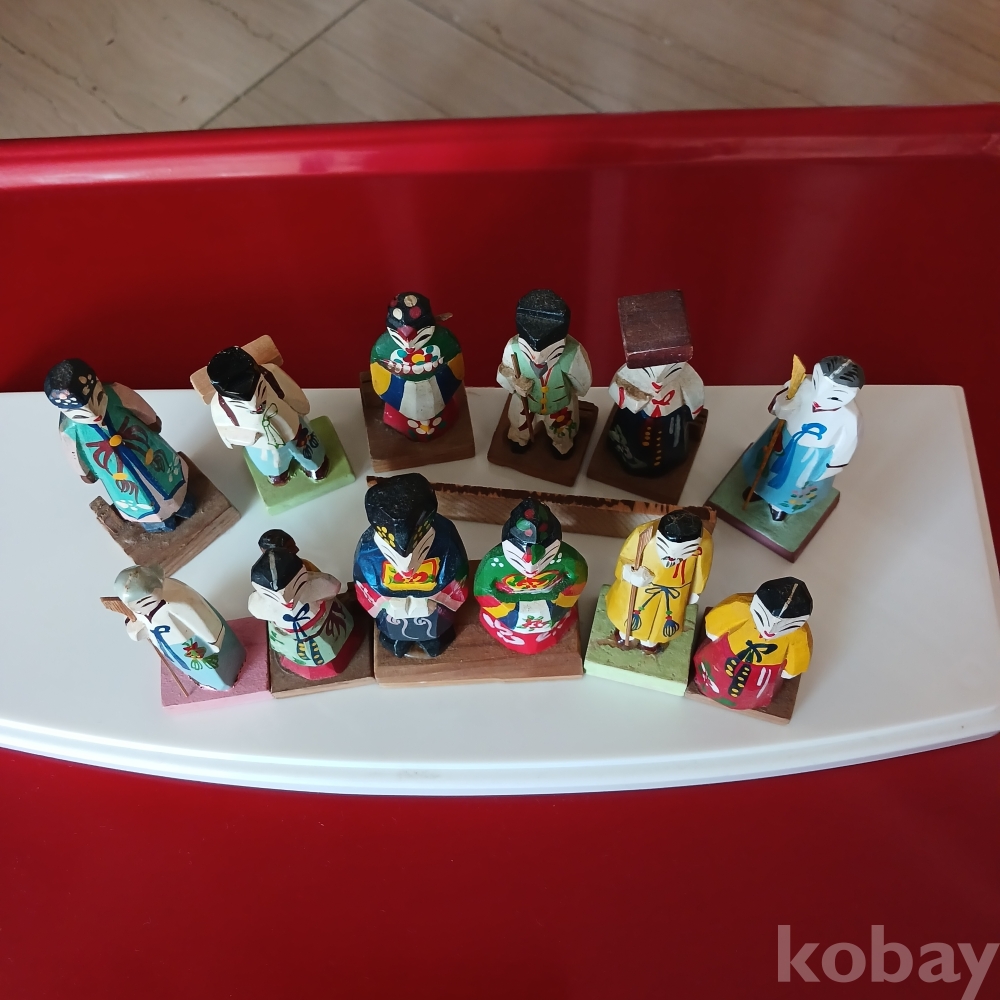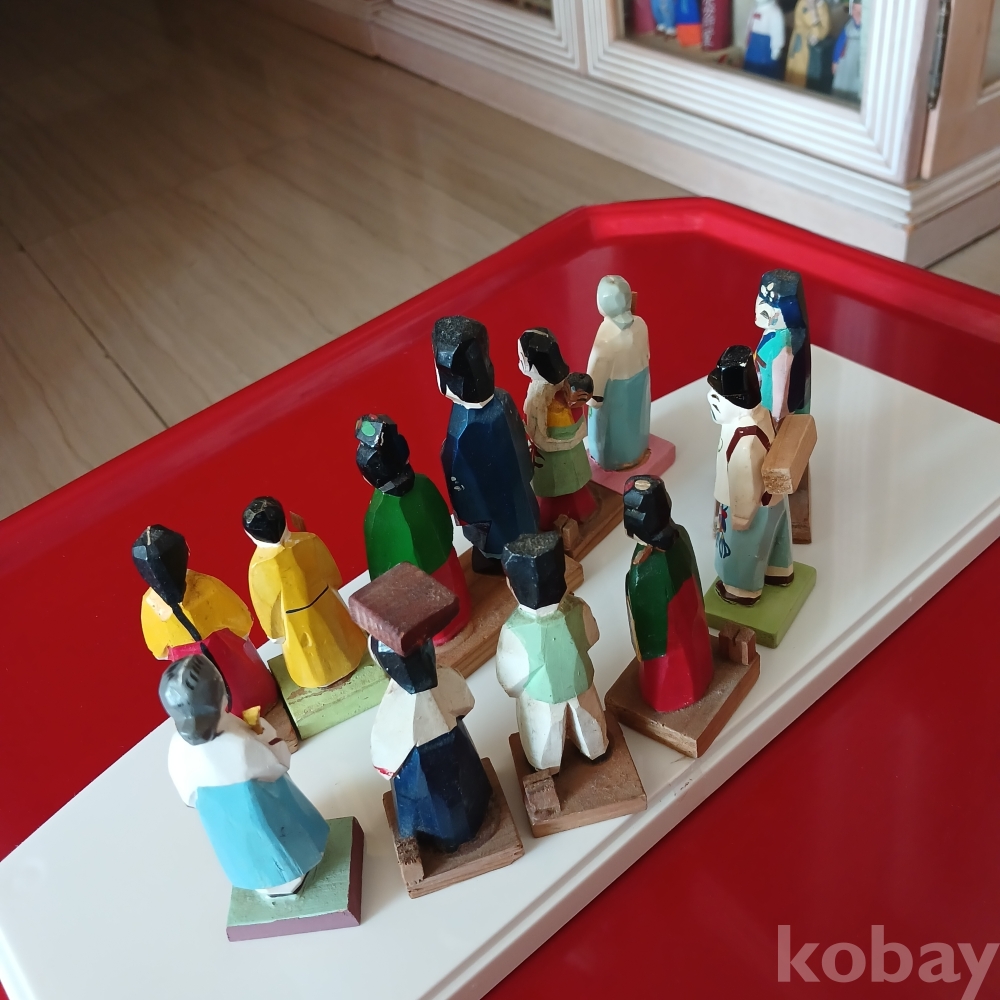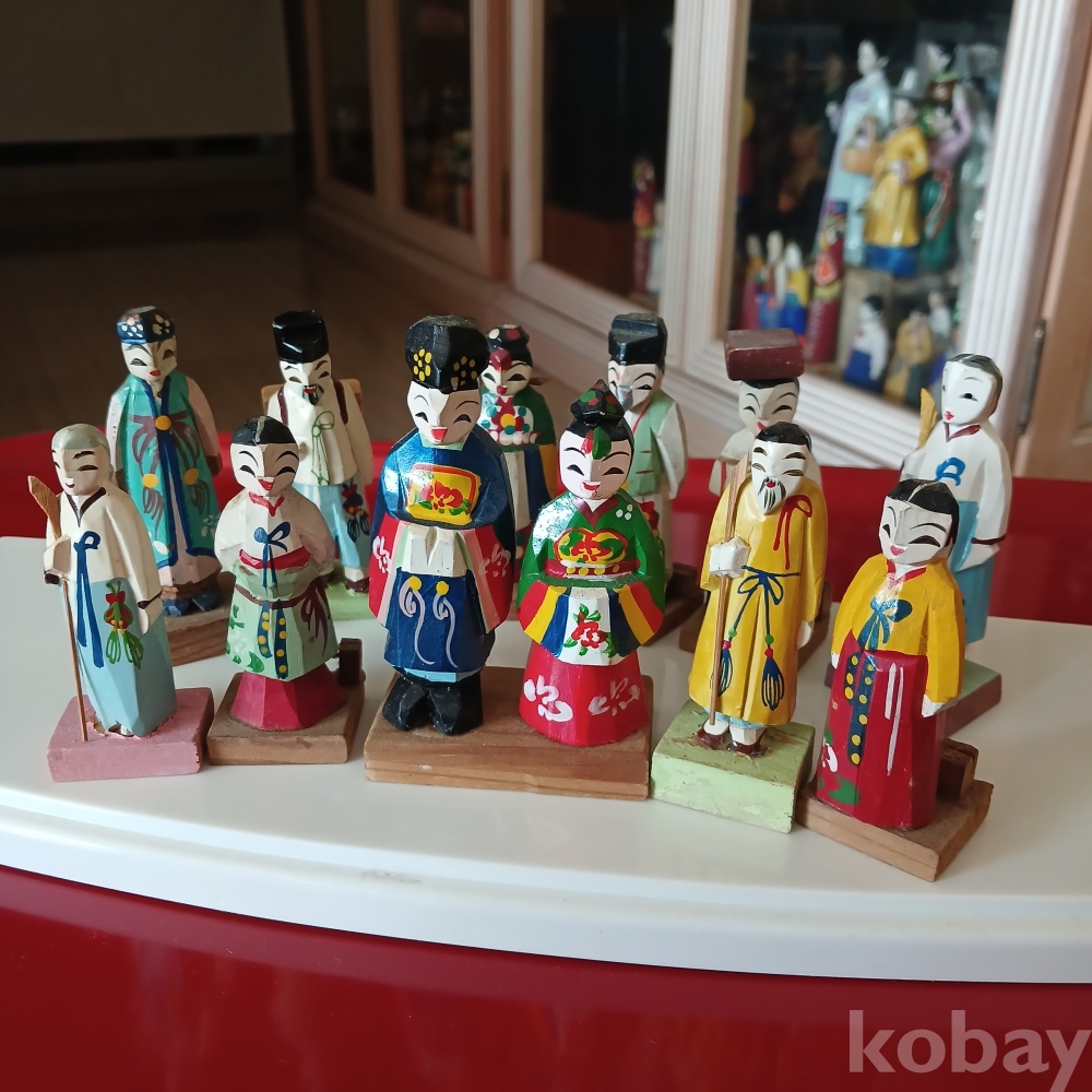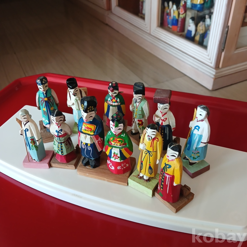 한국전쟁후 주둔미군들이 귀국때 기념으로 가져갔다 다시 돌아온 회귀유물 목각인형입니다 현대판 피규어입니다ᆢ 범람하는 피규어보다 우리 전통목각이 더 소중하지 않을까요 오랫동안 모아온 유물입니다ㆍ총12개