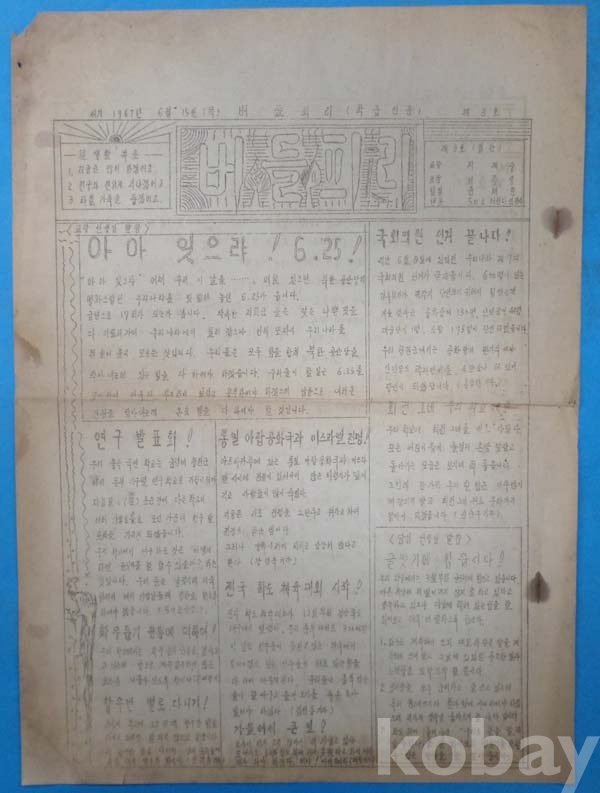1963-67년 청원군 용곡국민학교 관련자료 (학급신문 버들피리,각급학교에서 보낸 문서 등)