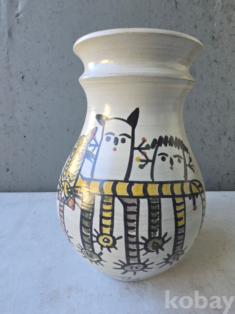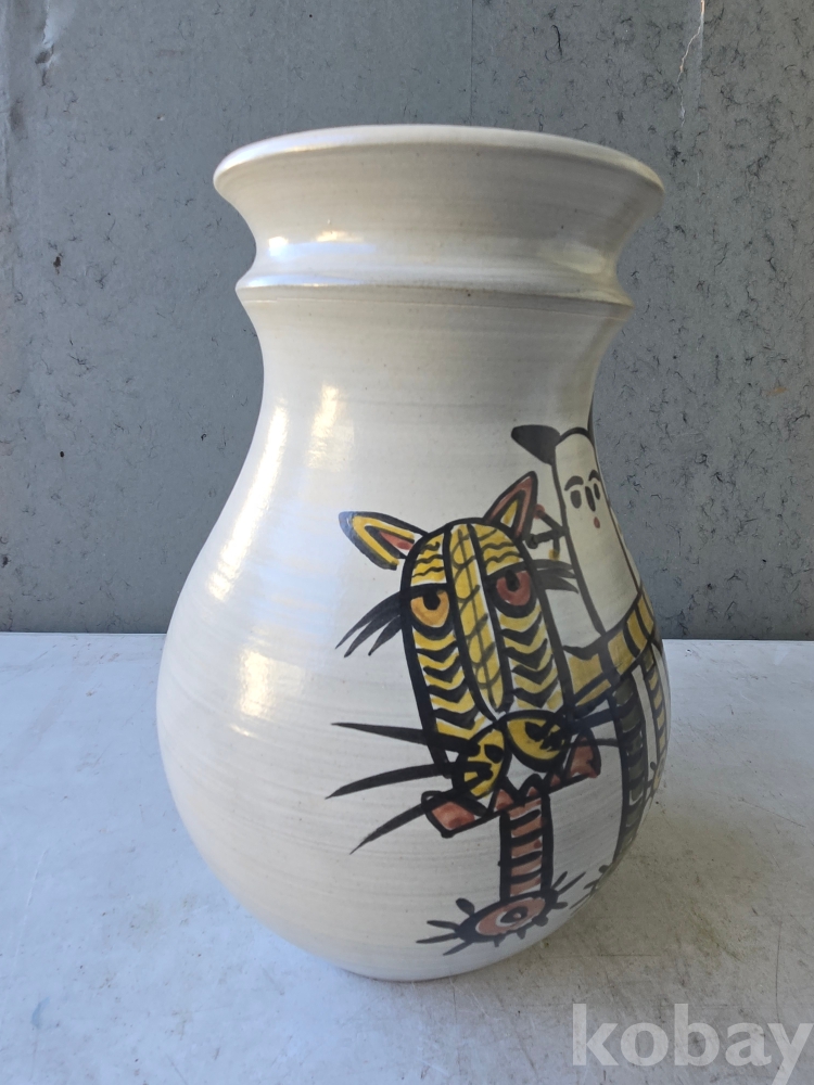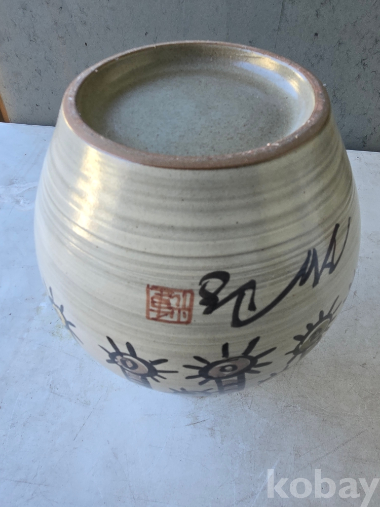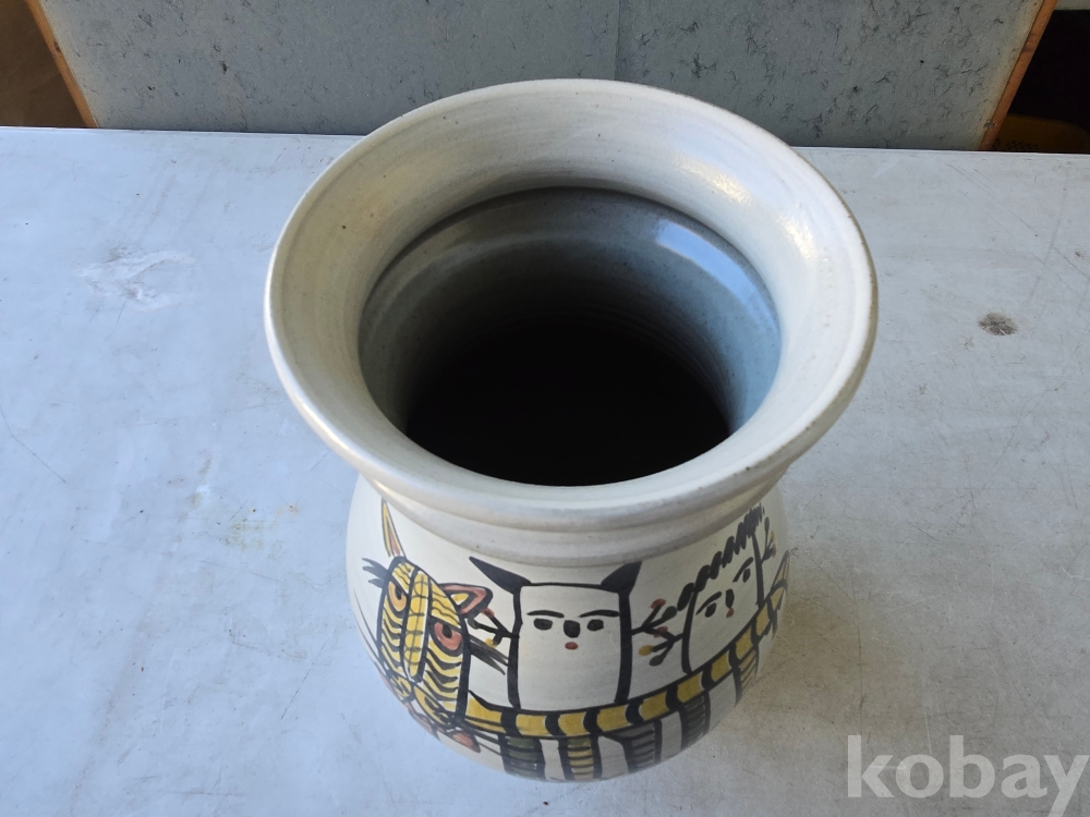 중광 그림이 있는 입이 큰 도자기 입니다.