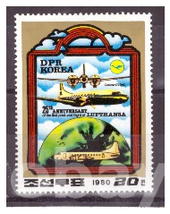 (비행기) 북한 1980.12.10 루프트한자 항공회사 비행기의 전후 첫 비행 25돐 1완 MNH