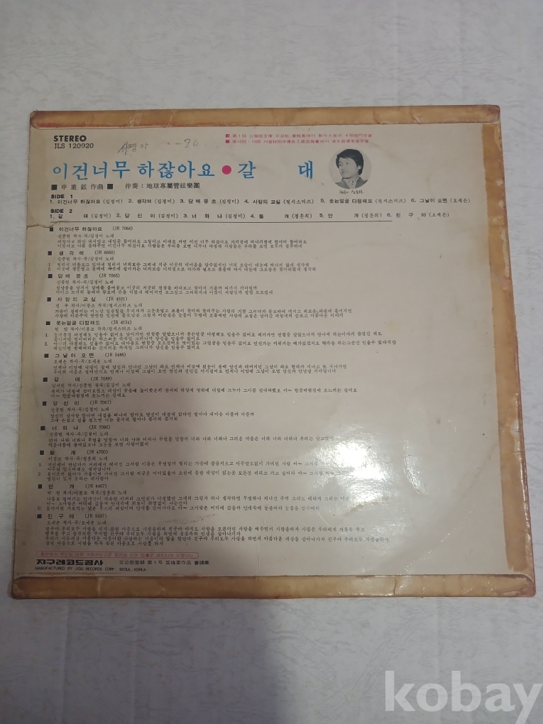 | 자켓상태 | EX : 약간의 마모, 모서리 찢김 존재 | 음반상태 | EX : 재생에 영향 없는 가벼운 기스 존재 | 발매정보 | 알수없음 | 가사지여부 | 무 |