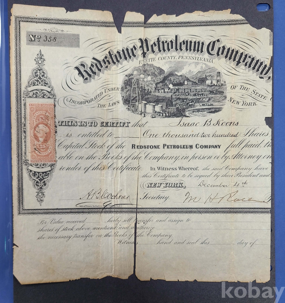[수입인지] 1800년대 미국 수입인지 첩부 문서/헐고 우측일부 탈락됨