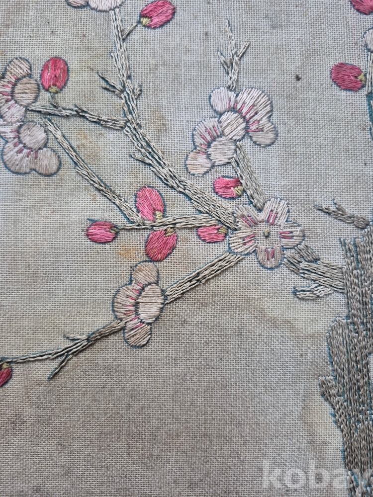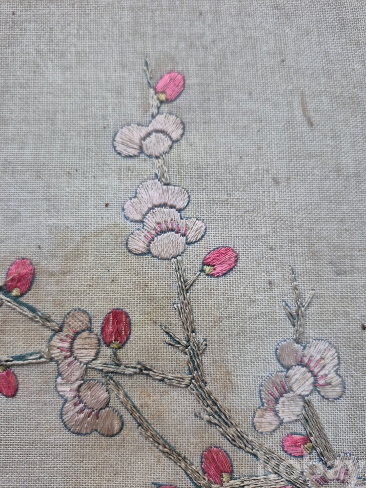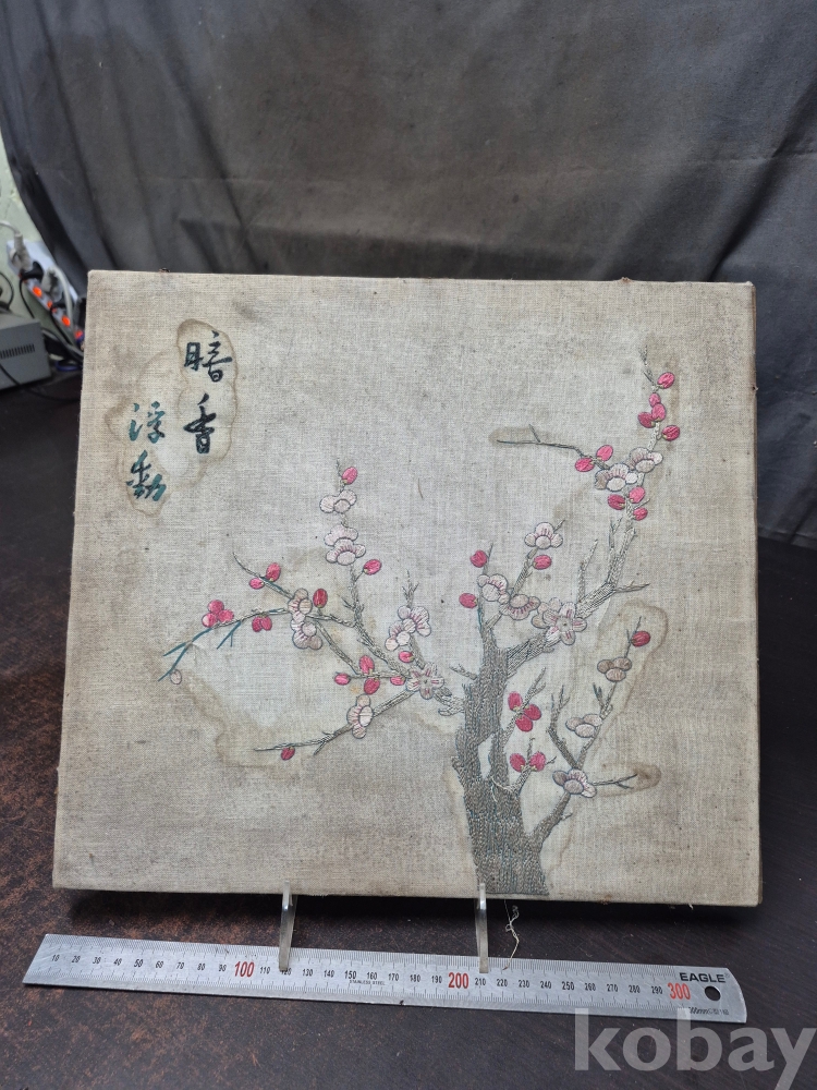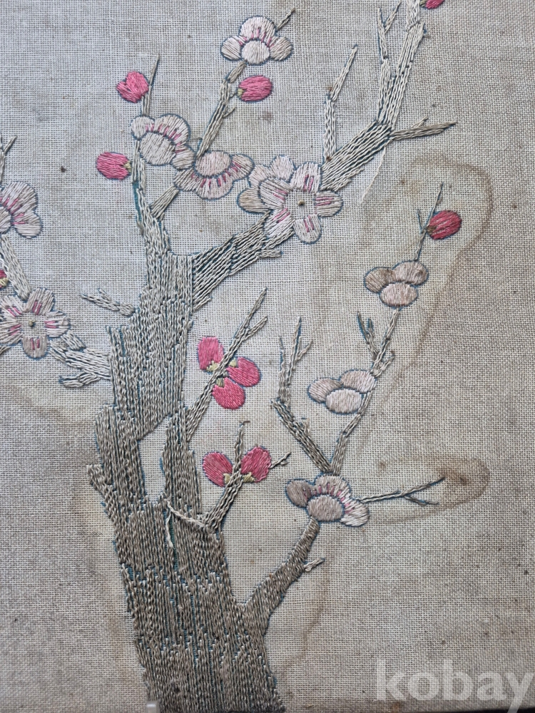 오래된 베바닥에 손으로 수를 매화를 수 놓은 작품 수 34*31*2