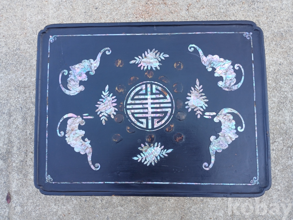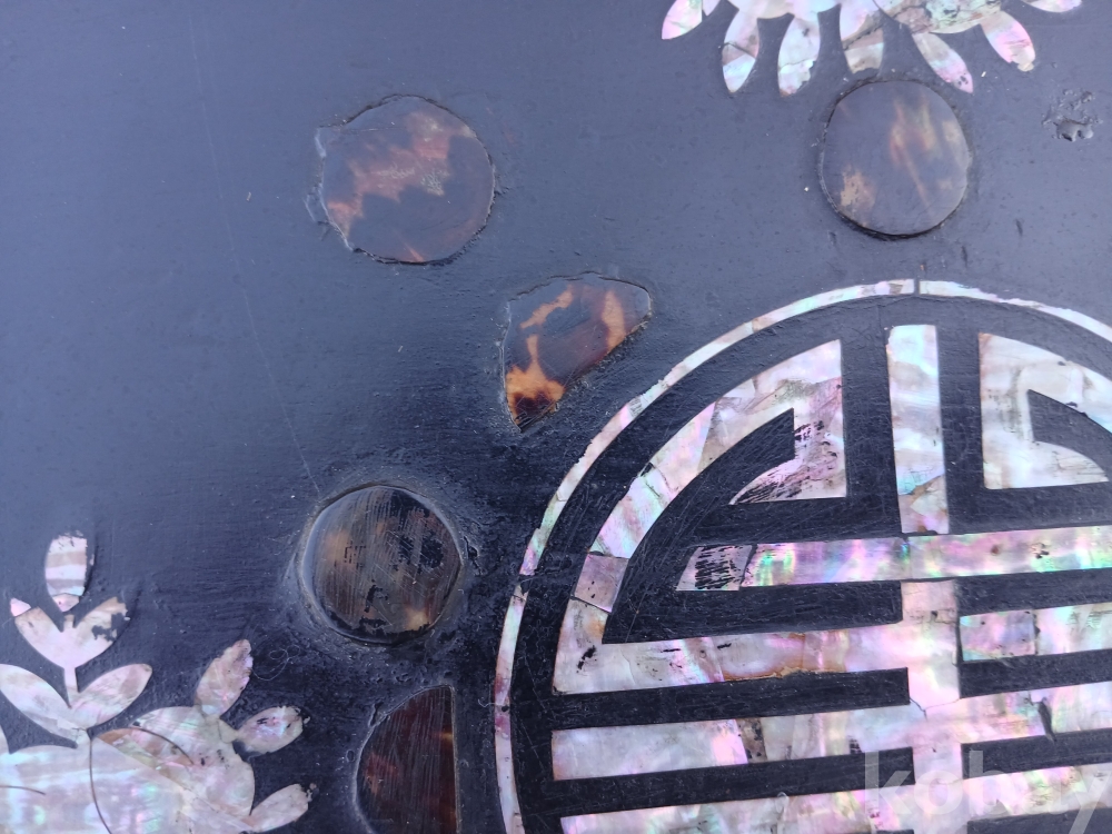 자개와 대모 (거북이 등껍질)가 같이 입사되어있는 예쁜 4각 소반 입니다.