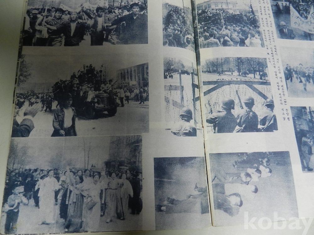 1960년 4.19 직후 당시 사건 현장 사진으로 만든 화보집 으로 사진과 해설로 만들어져 전시 자료로 활용하면 좋을거 같습니다 변색 세월감외 이미지 처럼 상태양호 이미지 참고바랍니다