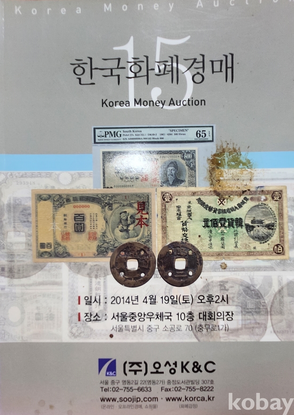 대한민국 통용권 지폐부터 조선은행권까지 다양한 지폐가 경매 낙찰 가격과 함께 수록된 도록입니다,
