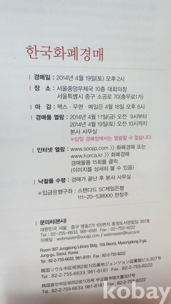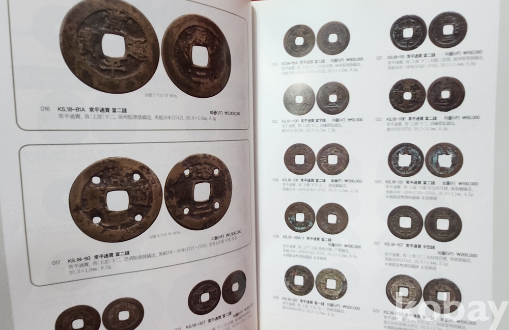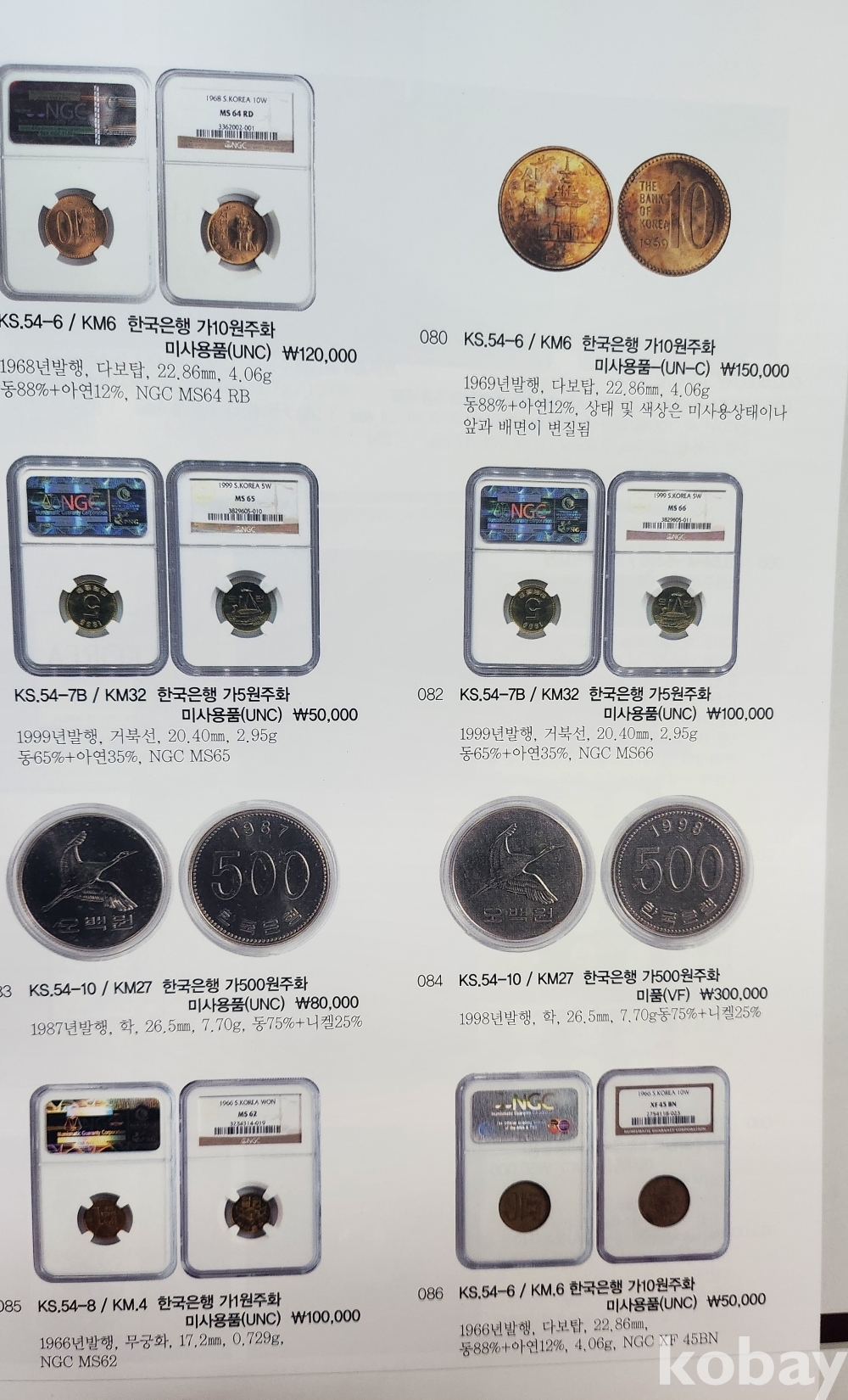 대한민국 현행주화와 각종 기념 주화가 경매 낙찰 가격과 함께 수록된 도록입니다