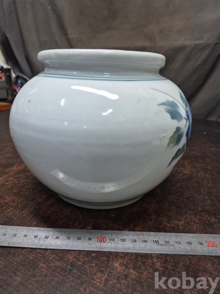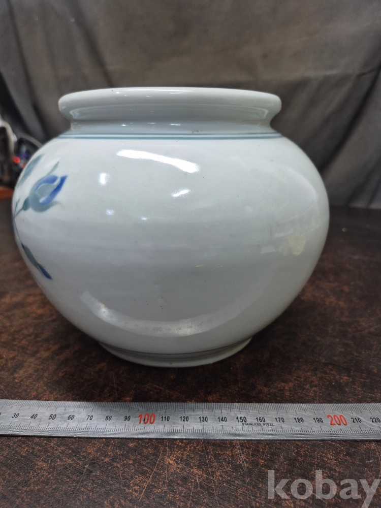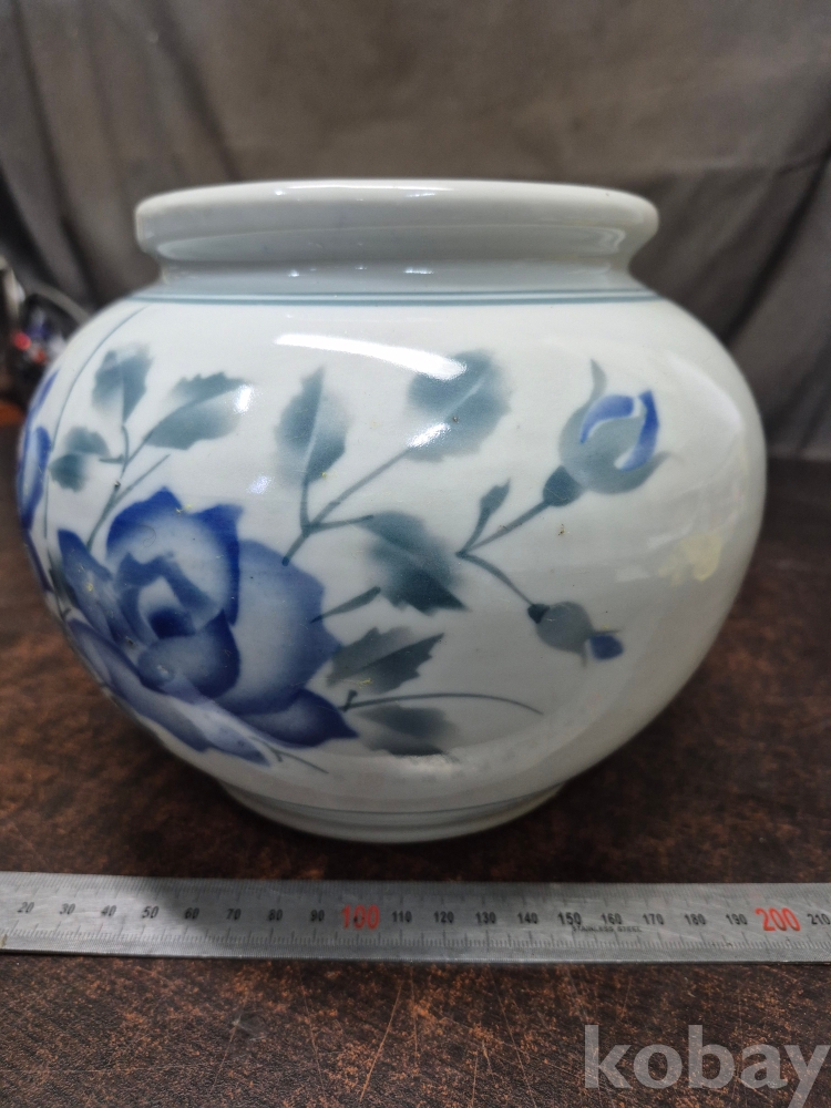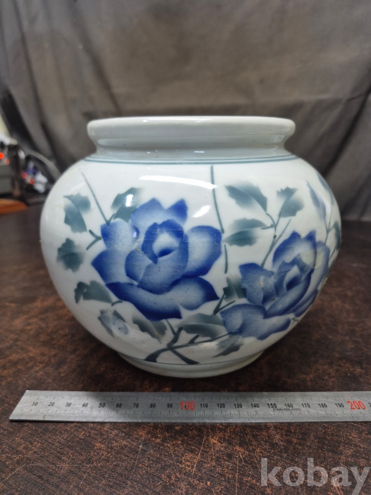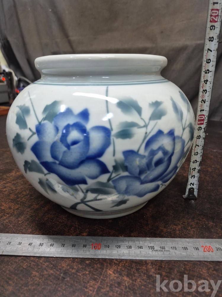 1910-40년대 단아하고 깨끗한 장미꽃을 묘사한 왜사기 목단 도자기 색상 코발드색상에 백자 21*21*17