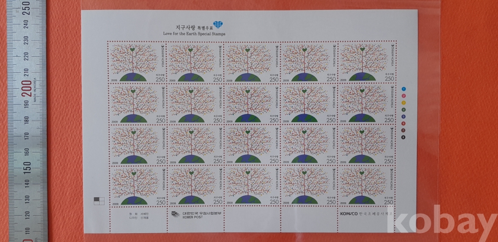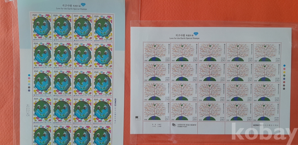 2009년 지구사랑 특별 20매 전지 2종 입니다.