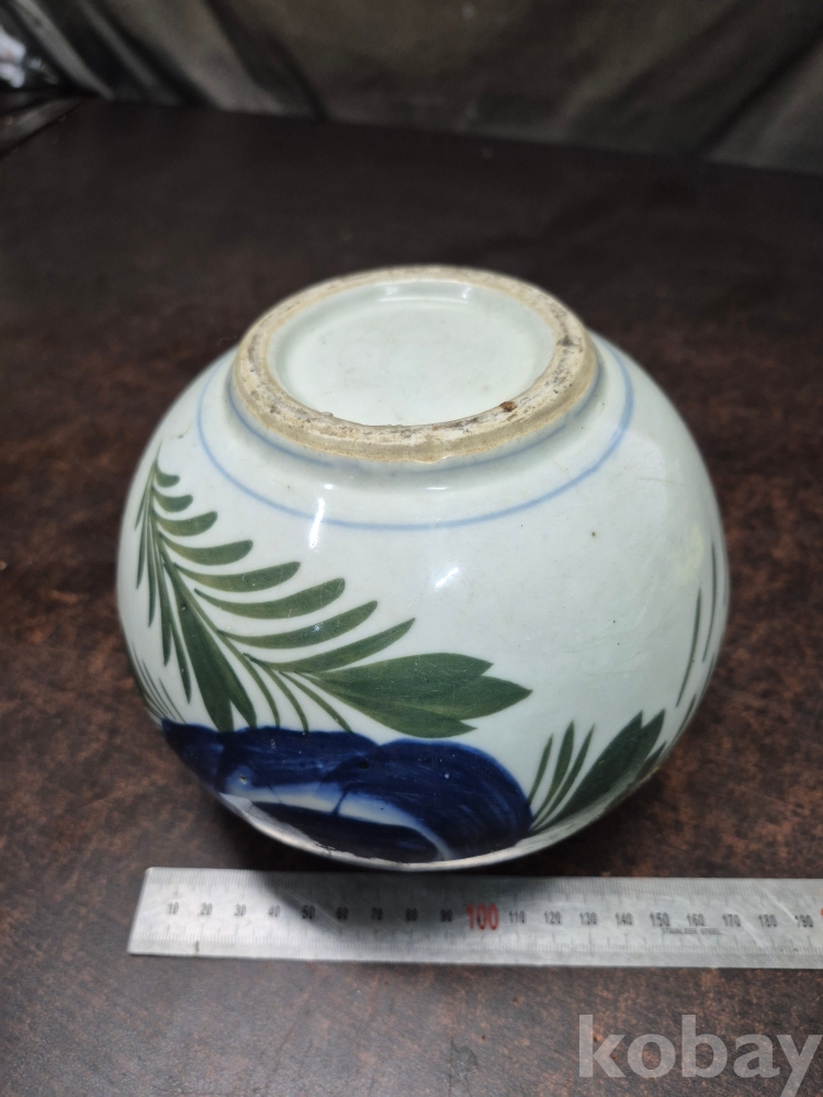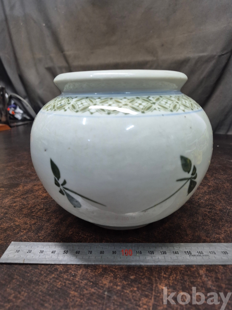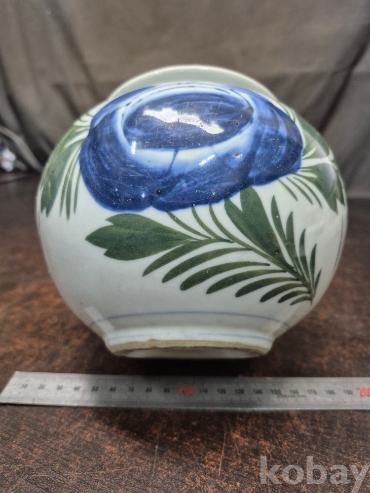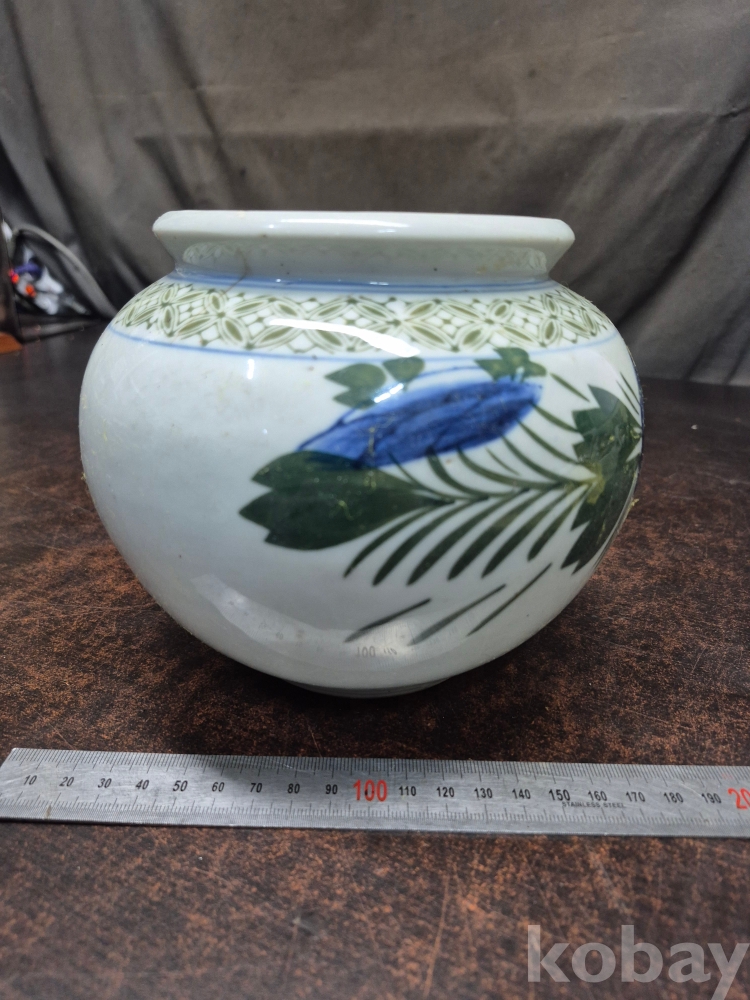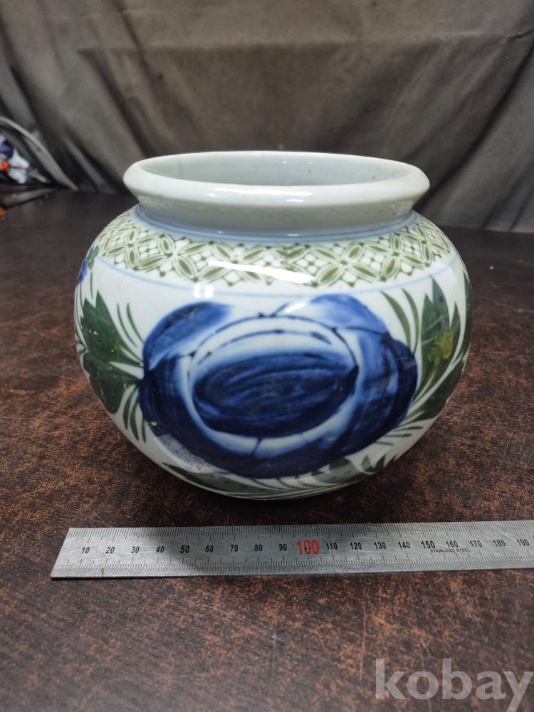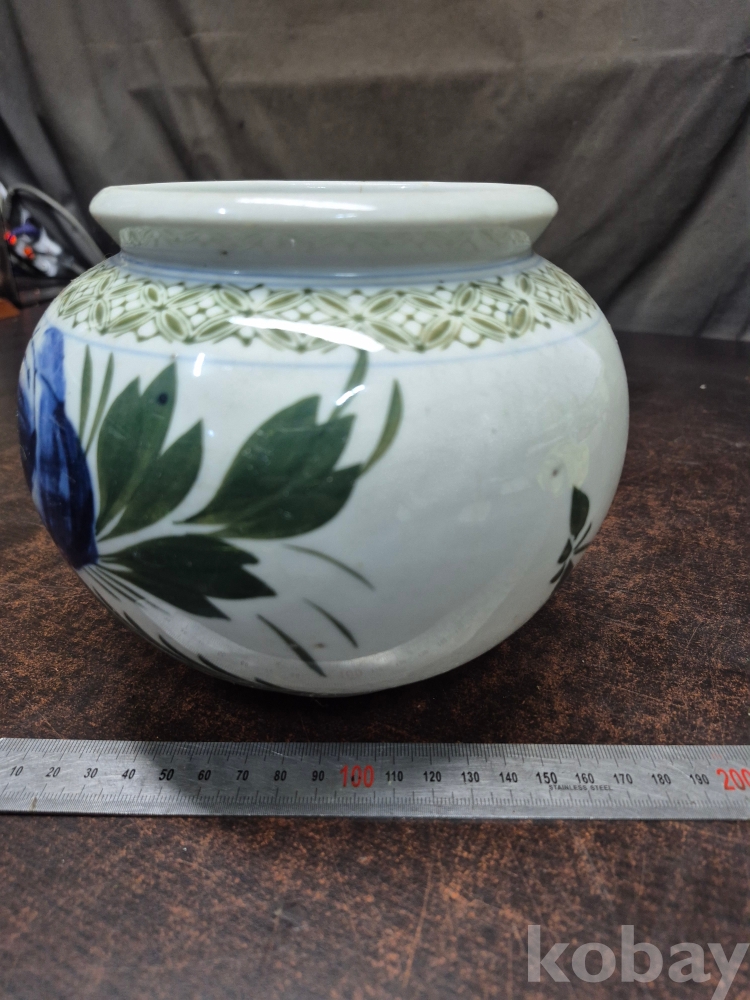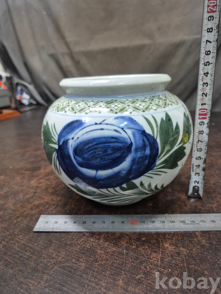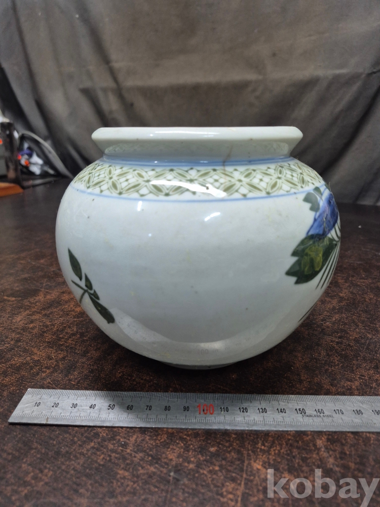 1910-40년대 단아하고 깨끗한 모란꽃을 묘사한 왜사기 목단 도자기 색상 코발드색상에 백자 17*17*15