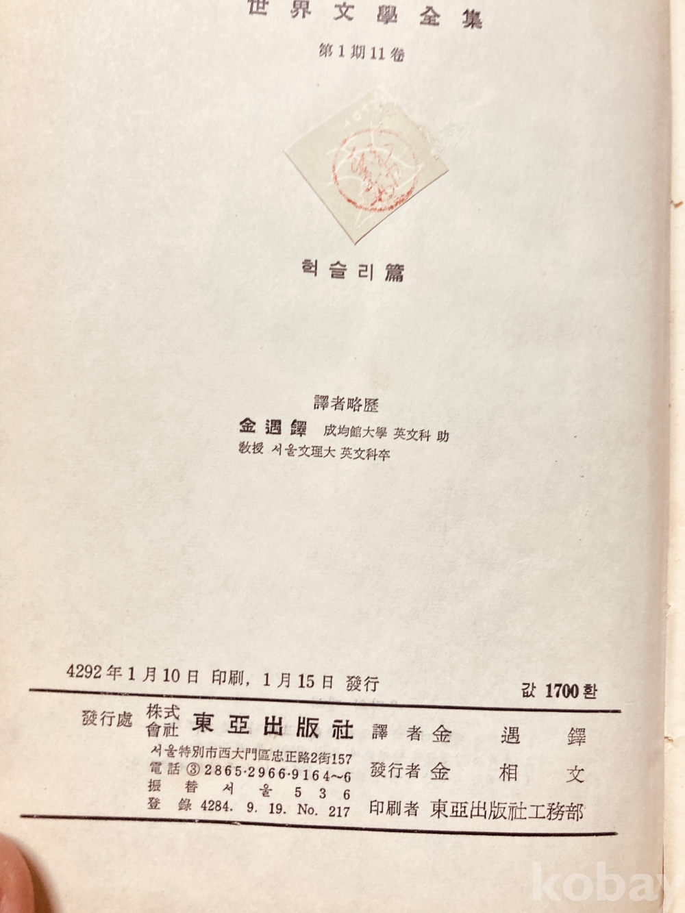 50년대 가장 고급으로 만든 세계문학전집입니다.