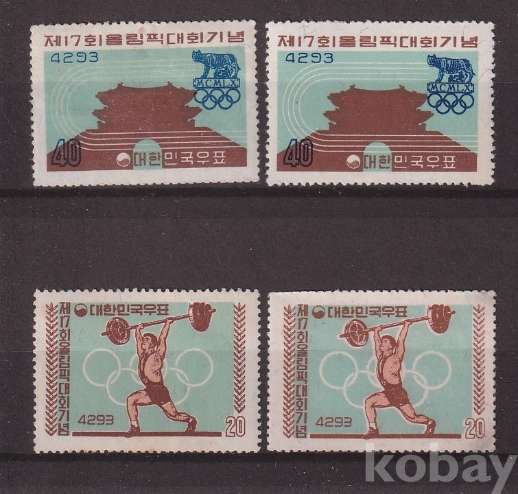 - 미사용 1960년 제 17회 올림픽대회 기념우표 2종 세트 4매 일괄