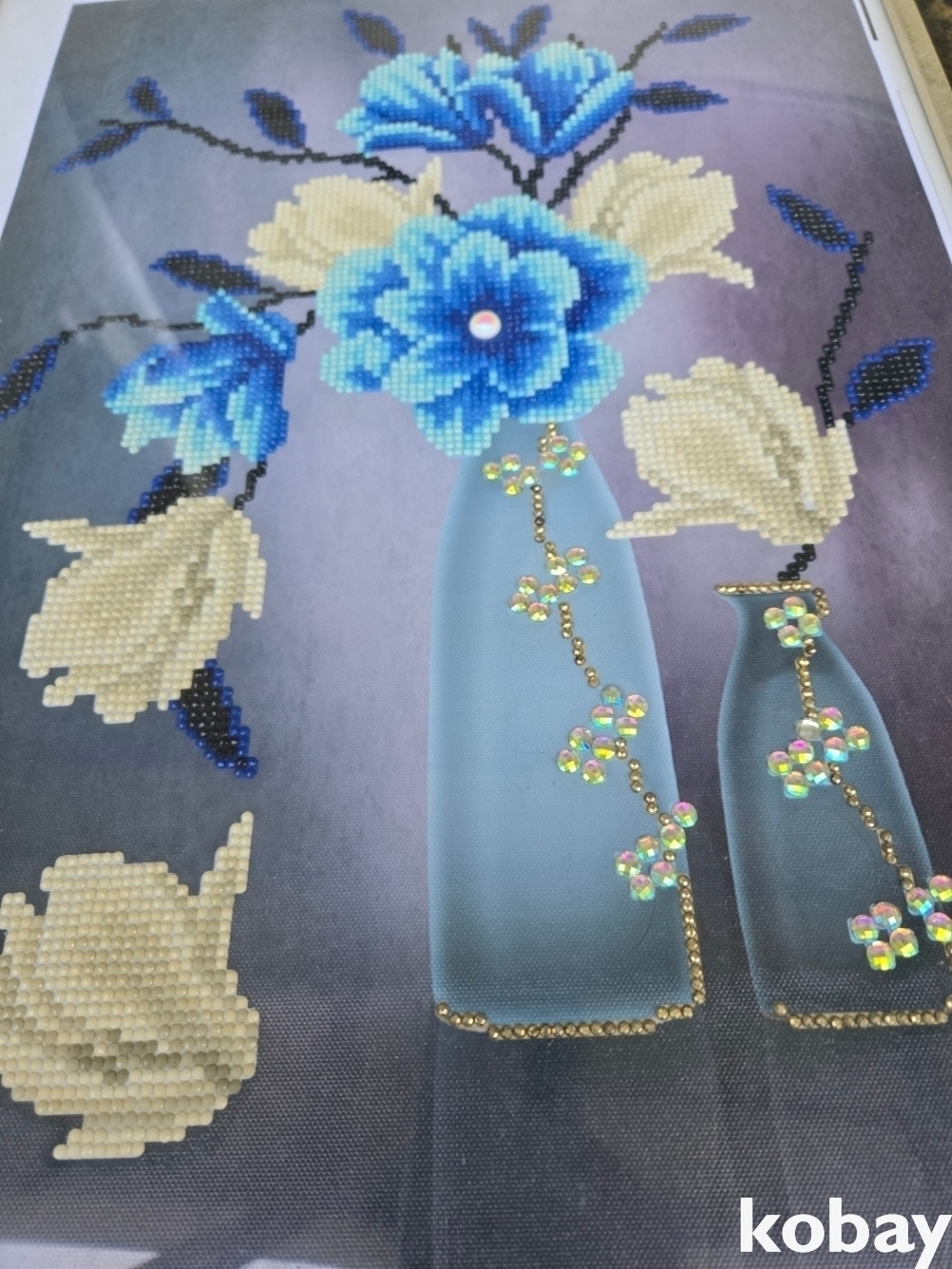 보석/비즈 십자수 화병 표현 액자 입니다.