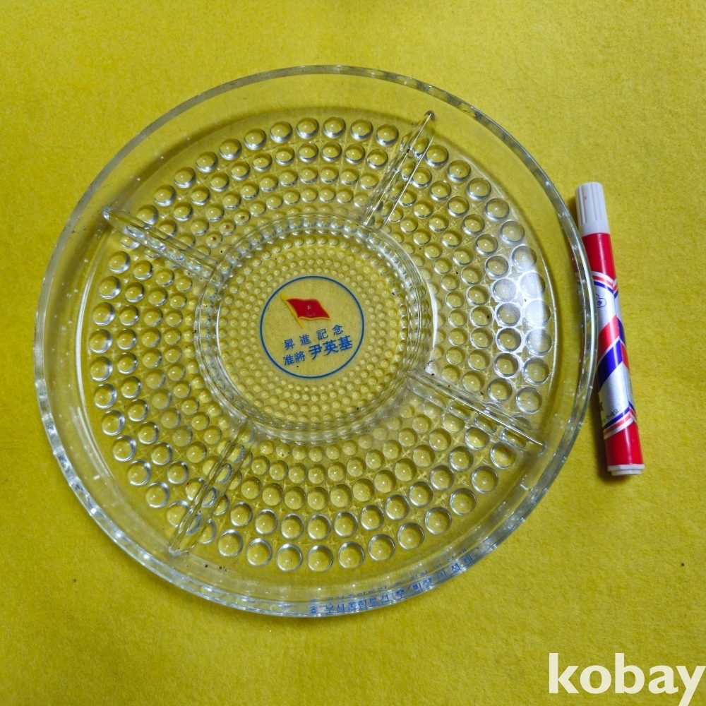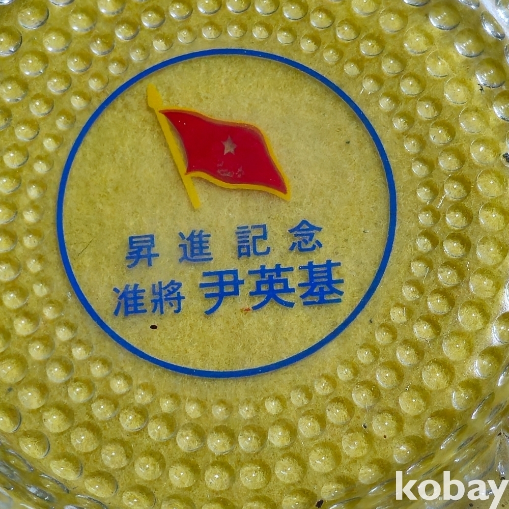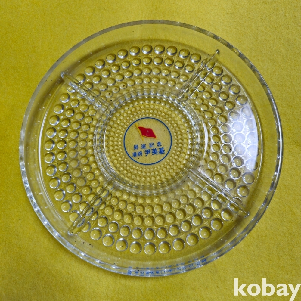 (((군자료))) 오래전 준장 尹英基 승진기념 무게감있는 유리다과접시 (우성종합토건 회장증)