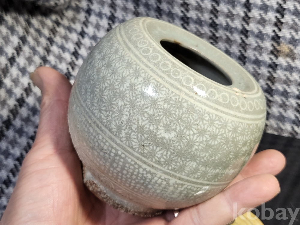 일본에서 가져온 작품으로 거의 원형에 가까운 독특한기형의 보기드문 유개호입니다.