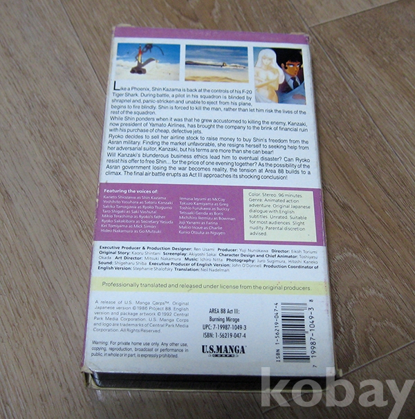 지옥의 외인부대 / 에어리어88 (AREA 88) 만화영화 Act 3 VHS 비디오 테이프 (1986년)