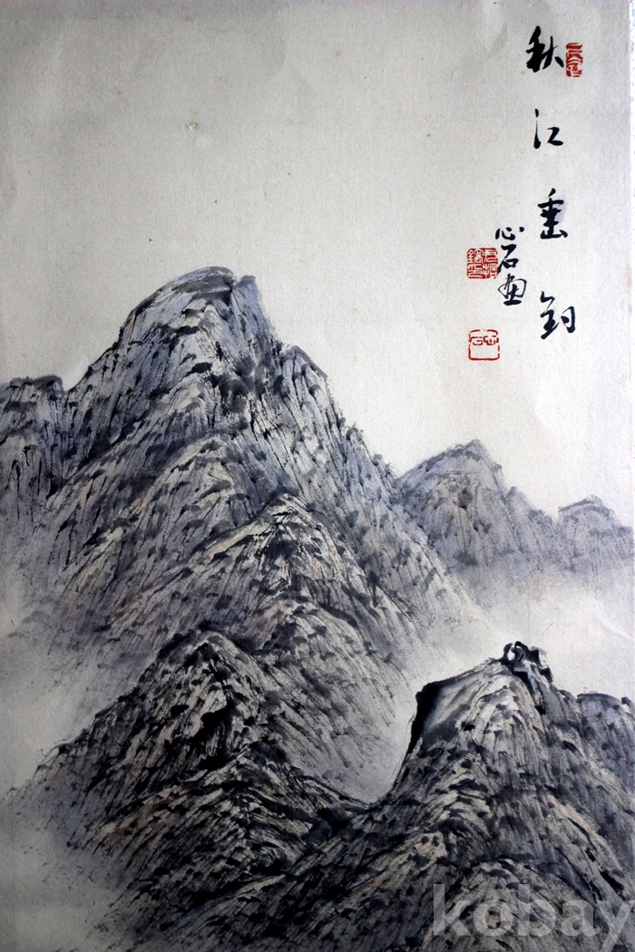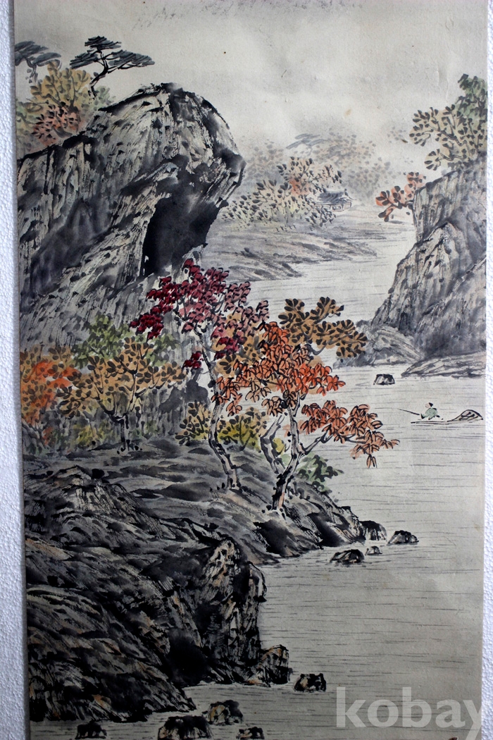 心石(심석) 윤철호의 작품 - 뱃사공이 있는 강가의 가을풍경