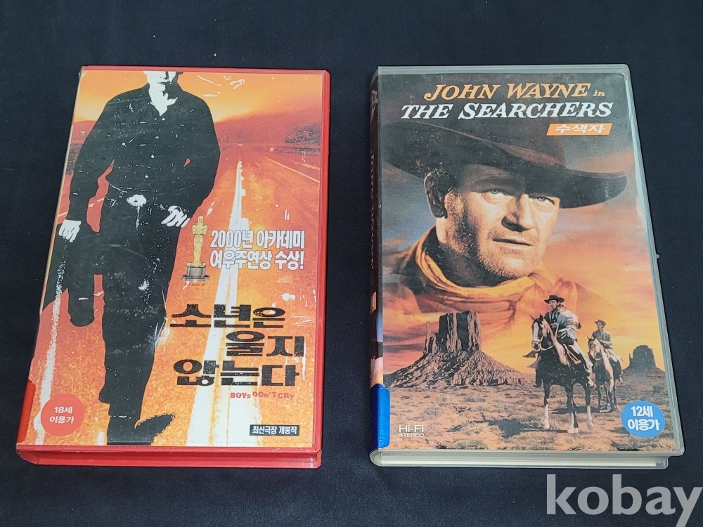 빈티지 영화 비디오테이프 2000년 소년은 울지 않는다(1999년 개봉작), 2000년 수색자(1956년 개봉작) 등 2종 일괄입니다.
