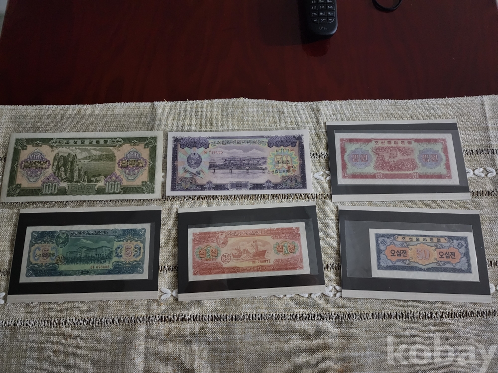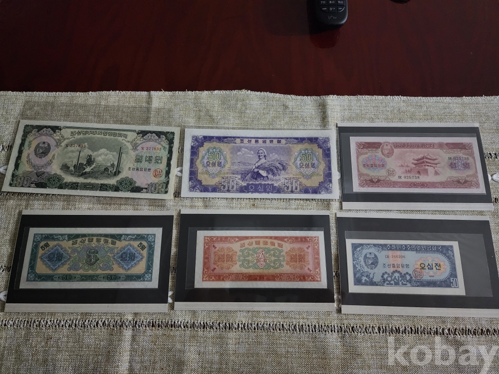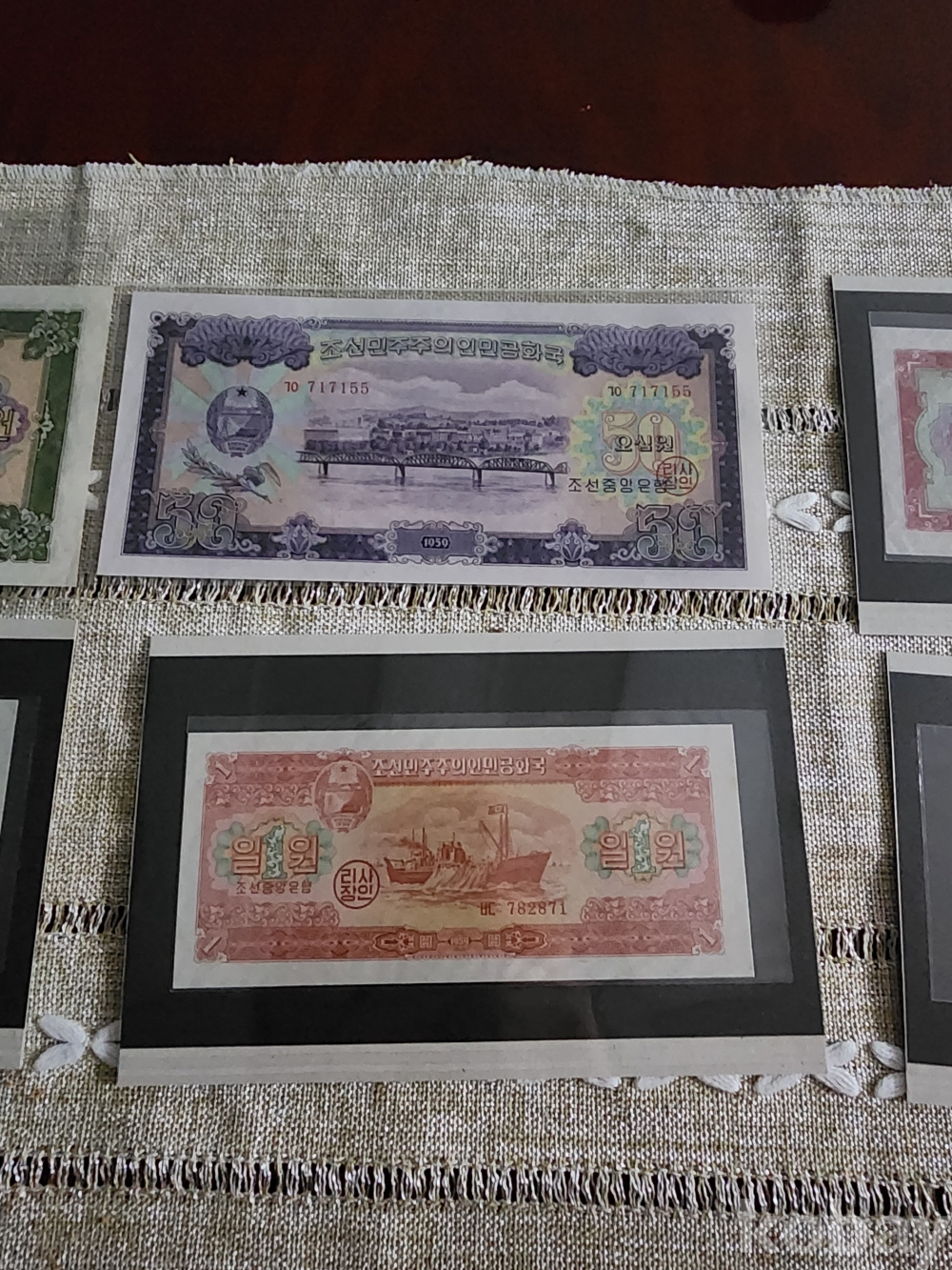 매우 귀한 1959년 북한조선중앙은행 지폐 6종세트 미사용권입니다.