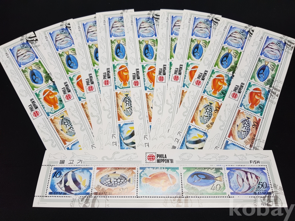 - 1991년 윗동네 물고기 시리즈 소형 전지 5종 10장 모음