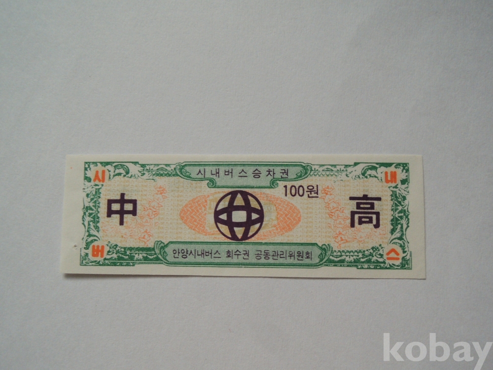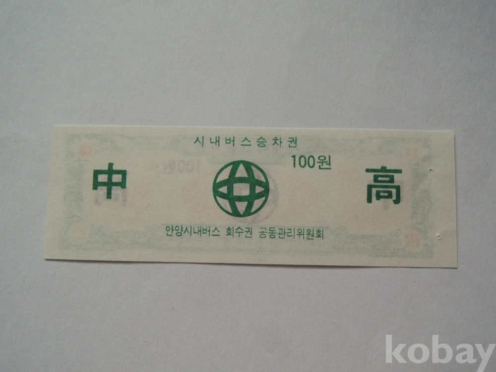 안양시내버스 중고생 회수권(100원)