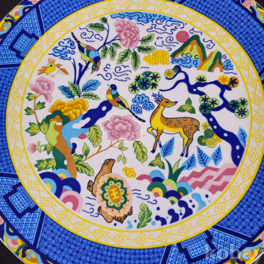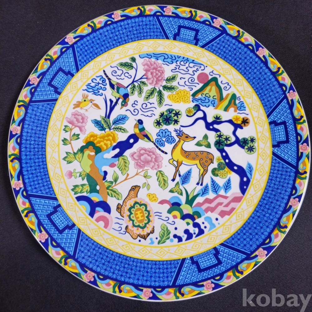 (((근현대사자료/도자기접시))) 오래전 한국도자기에서만든 십장생그림 무게감있는 대형 宮中大王皿