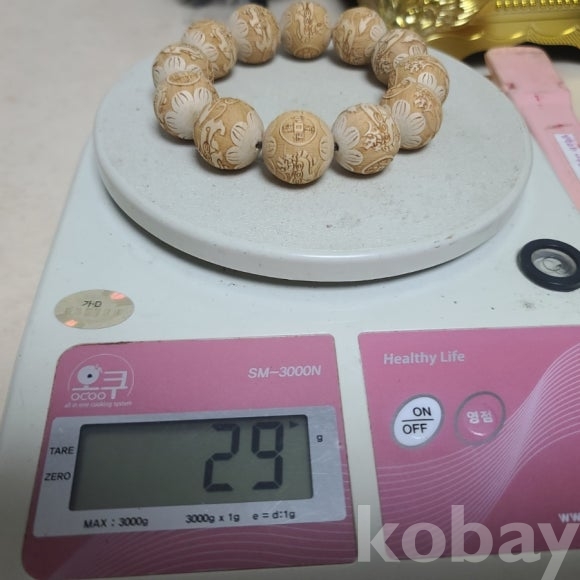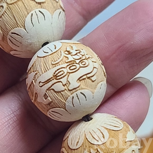 금강송으로 조각한 염주입니다 염주알 하나하나 조각을 더 했습니다