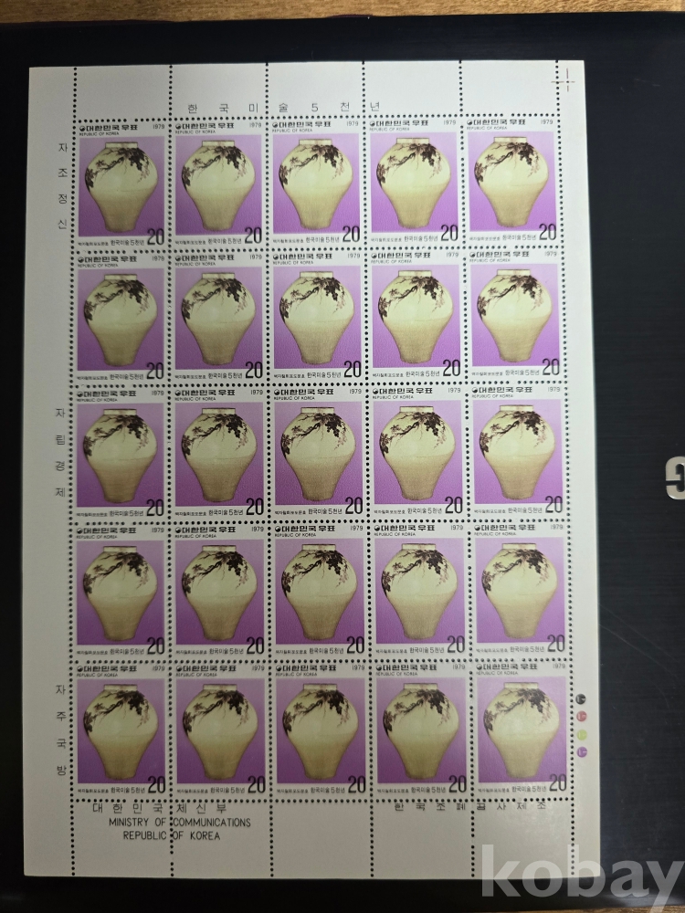 미사용전지우표/79'10.15한국미술5000년3차백자철회포도문호