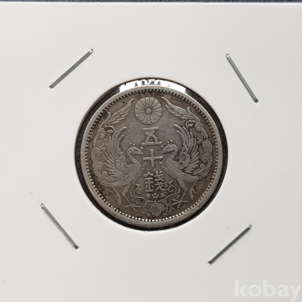 - 진품 일본 은화 - 대정(다이쇼) 12년(1923년) 오십전 욱일 은화