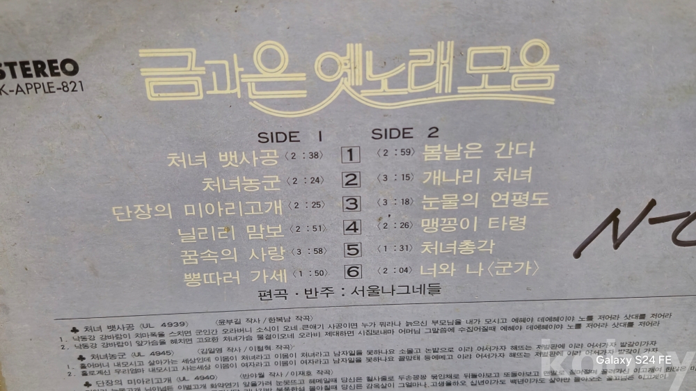 | 자켓상태 | EX : 약간의 마모, 모서리 찢김 존재 | 음반상태 | VG : 생활 기스 다수, 가벼운 노이즈 존재 | 발매정보 | 초반 | 가사지여부 | 유 |
