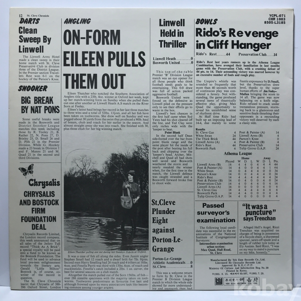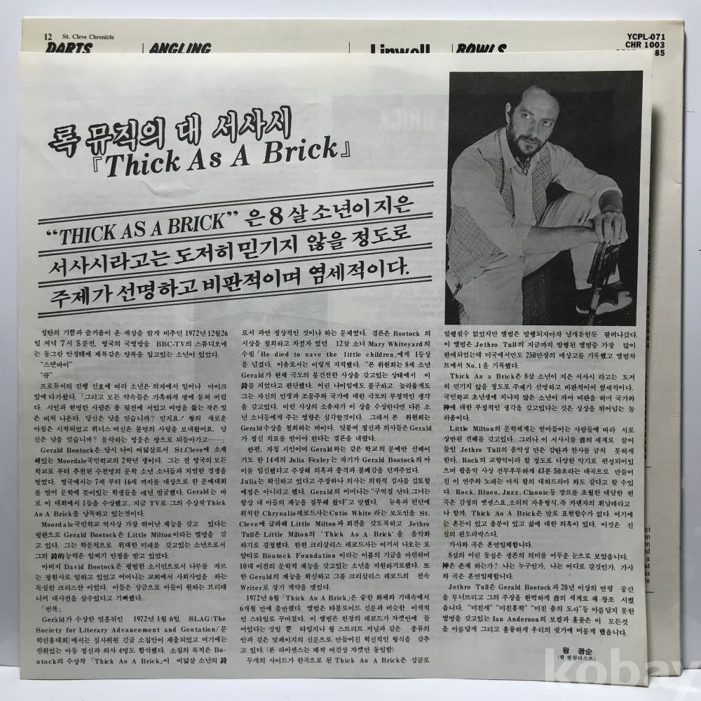 LP 36,050-100 Jethro Tull - Thick As A Brick . 85 국내반 자켓 EX+ 알판 EX