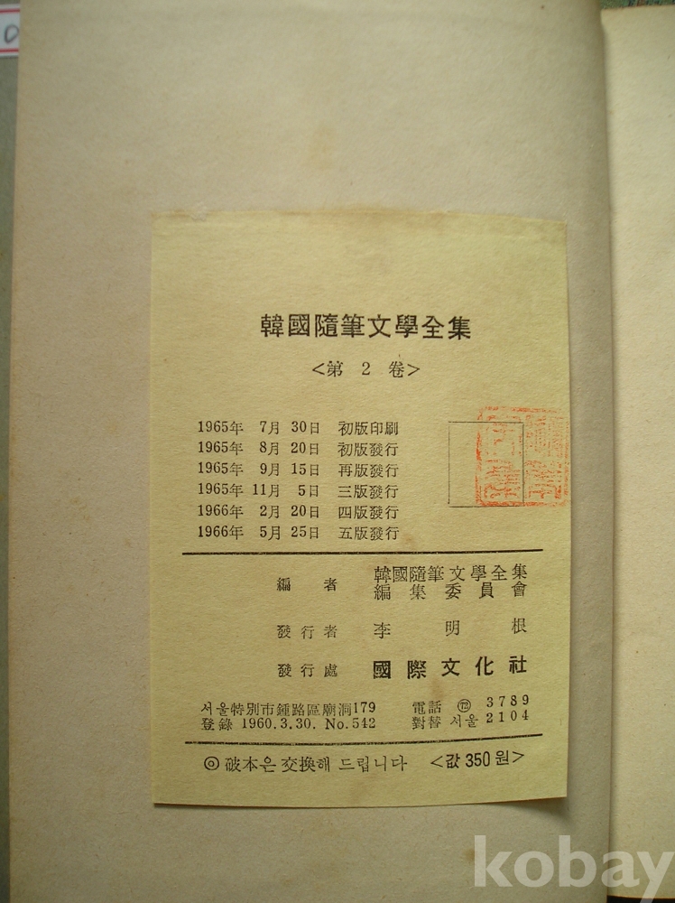 | 제조국 | 한국 | 연대 | 1960년~1979년 |