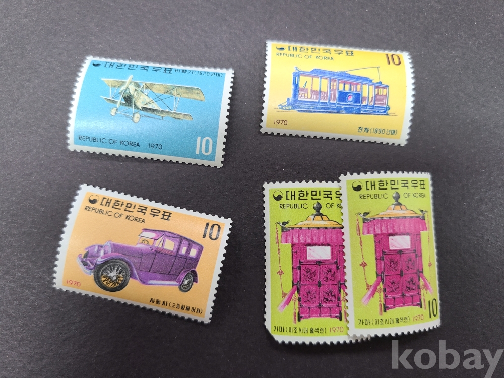 **** 대한민국우표/가마(이조시대홍색련)외 3종/1970