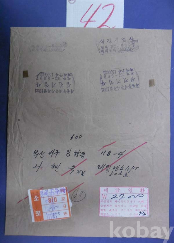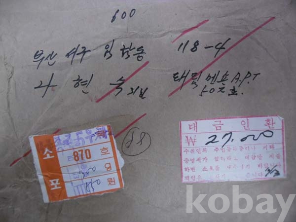 소포우편 자료 [엔타컷트/대금인환 27,000원]*서울종로5,80.10.13