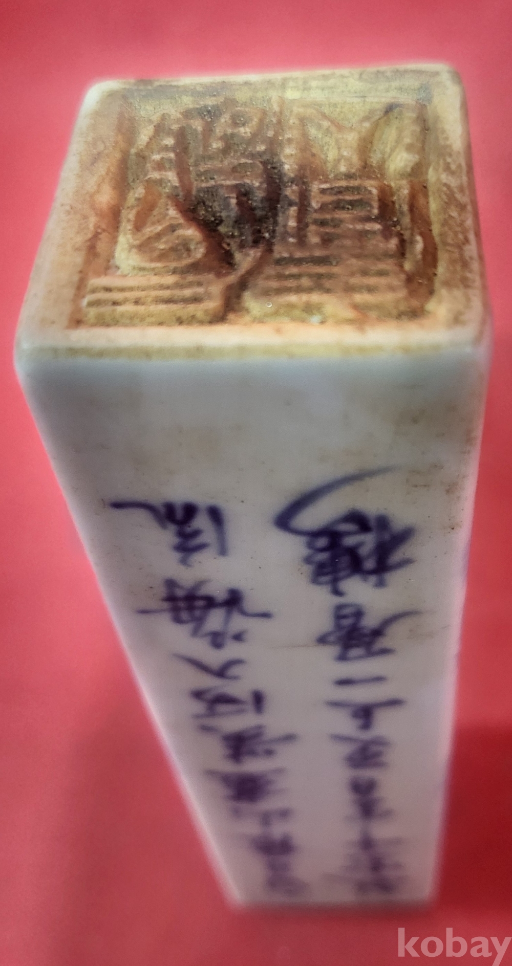 짱짱한 연대 갖춘 청자 산수와 서예문양 사용제 (낙관)도장입니다,