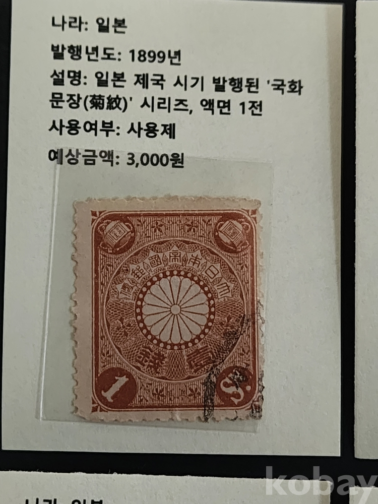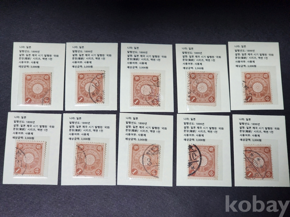 1899년 일본 국화문장 시리즈 1전 우표. 10장 일괄.