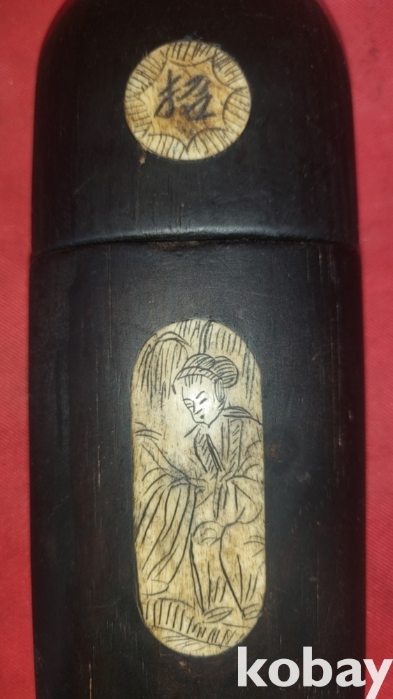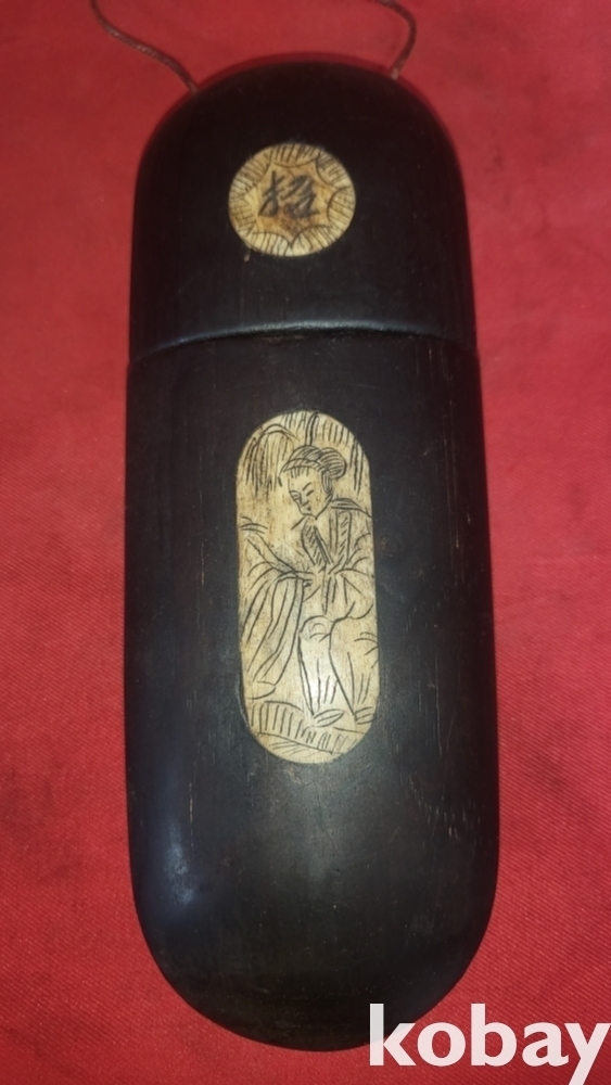 조선시대 나무에 우각(牛角)을 상감기법으로 삽임하고 인물과(동자) 한자가 양면에 있는 안경집입니다,