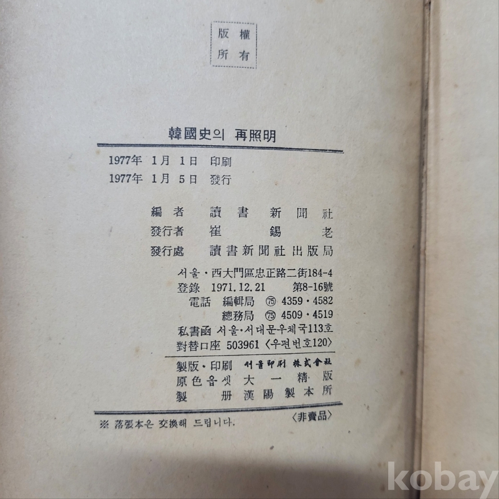 중급 : 표지없음/ 바램/ 필기 낙서/ 직인/ 갈라짐