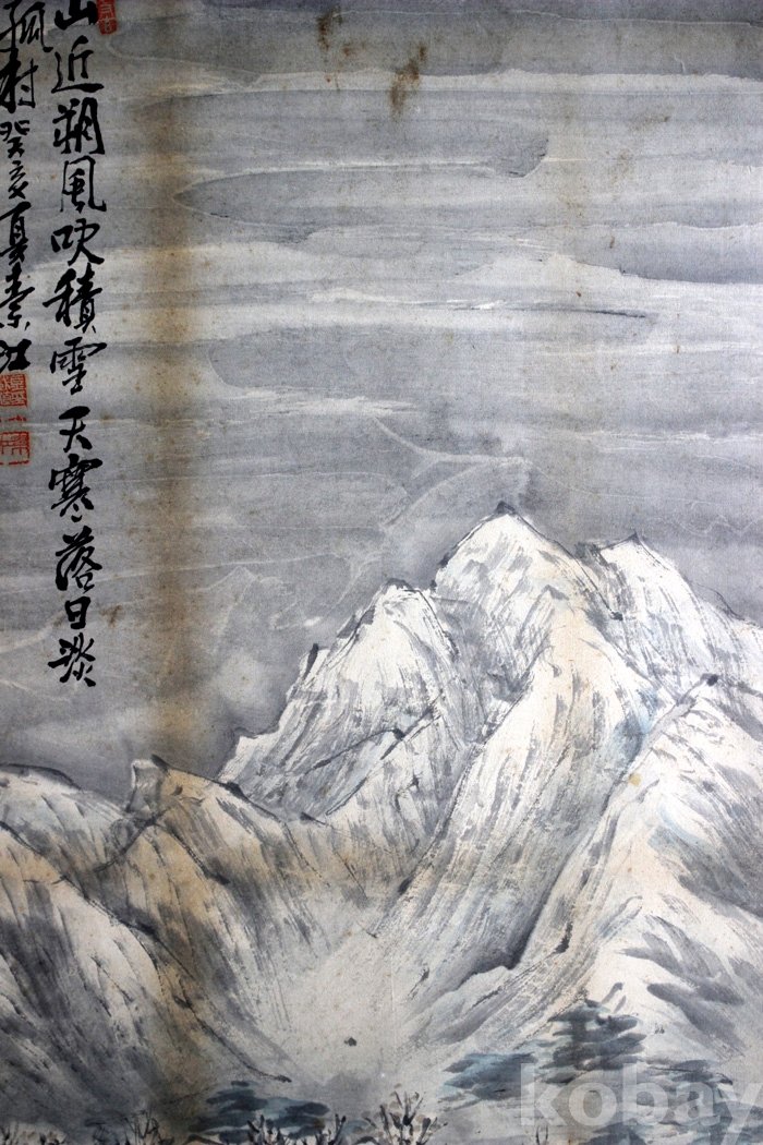 상태 : 표구의 나무에 닿았던 자욱이 있을 뿐 표구시 지워질 듯하며 양호하고 좋음