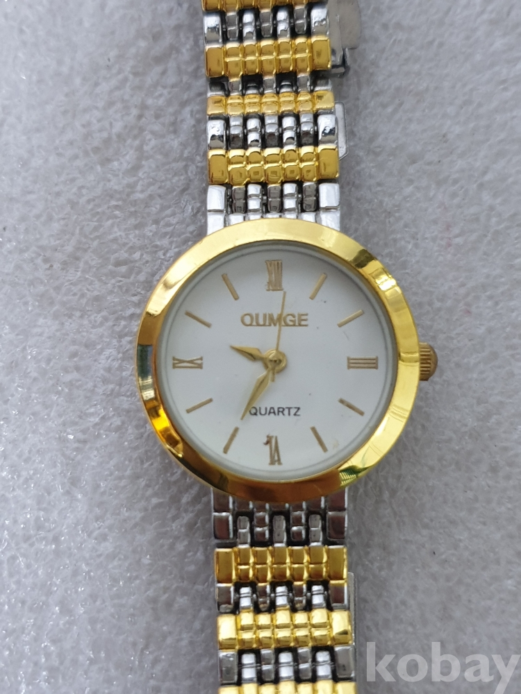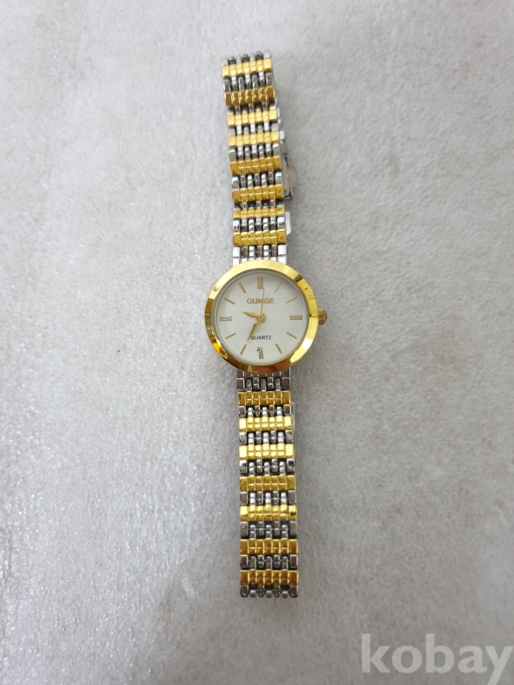 {천원경매} 11-1265 QUMGE 원형 금색 메탈 줄 손목시계(작동확인안됨, 정품확인불가)