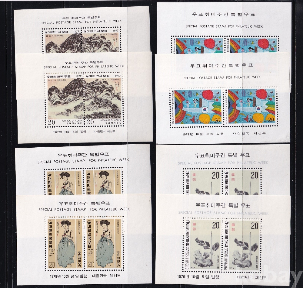 - 미사용 1976년 ~ 1979년 우표취미주간 기념시트 4종 8장 모음