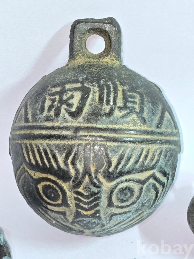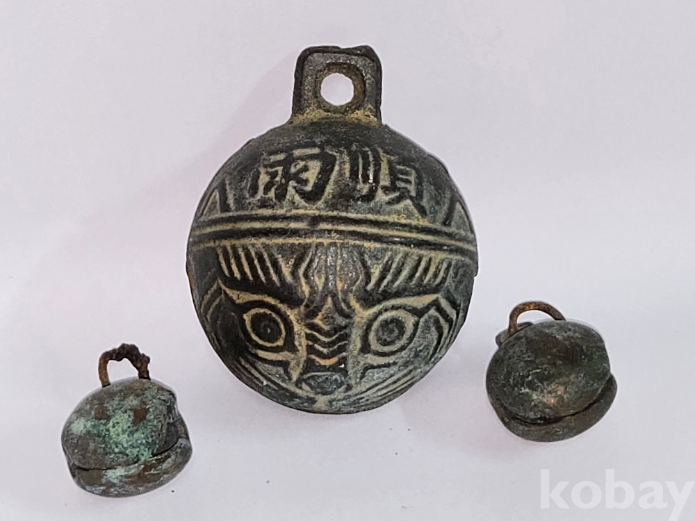 청동 방울 = 우순풍조(雨順風調)= 온 세상이 태평하고 평화롭다는 뜻의 사자성어가 표기된 도깨비 형태의 청봉방울 등 3점 일괄