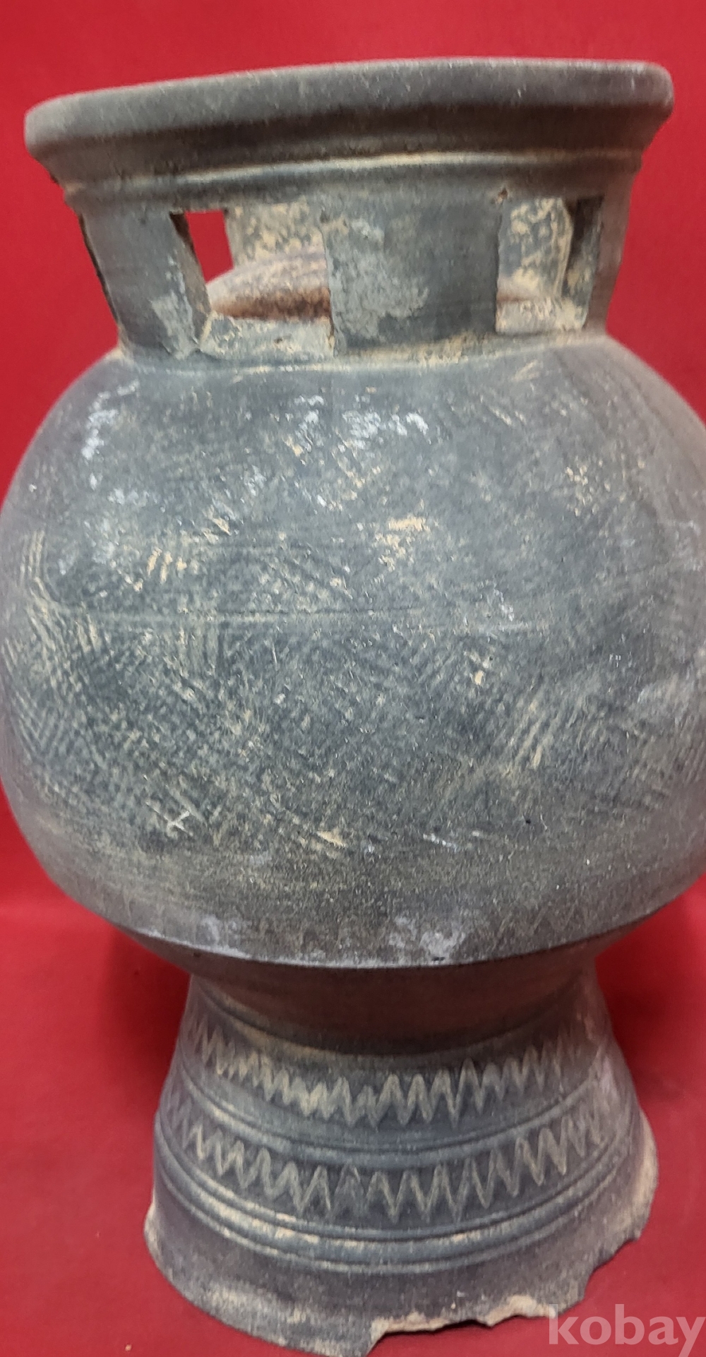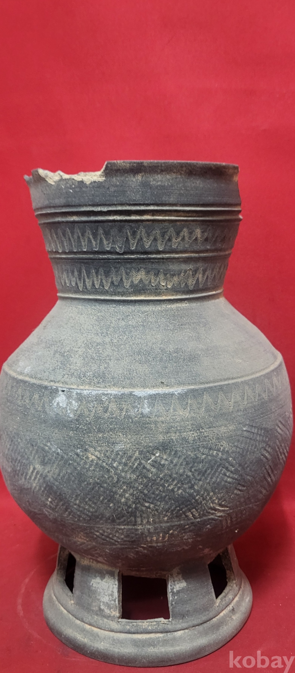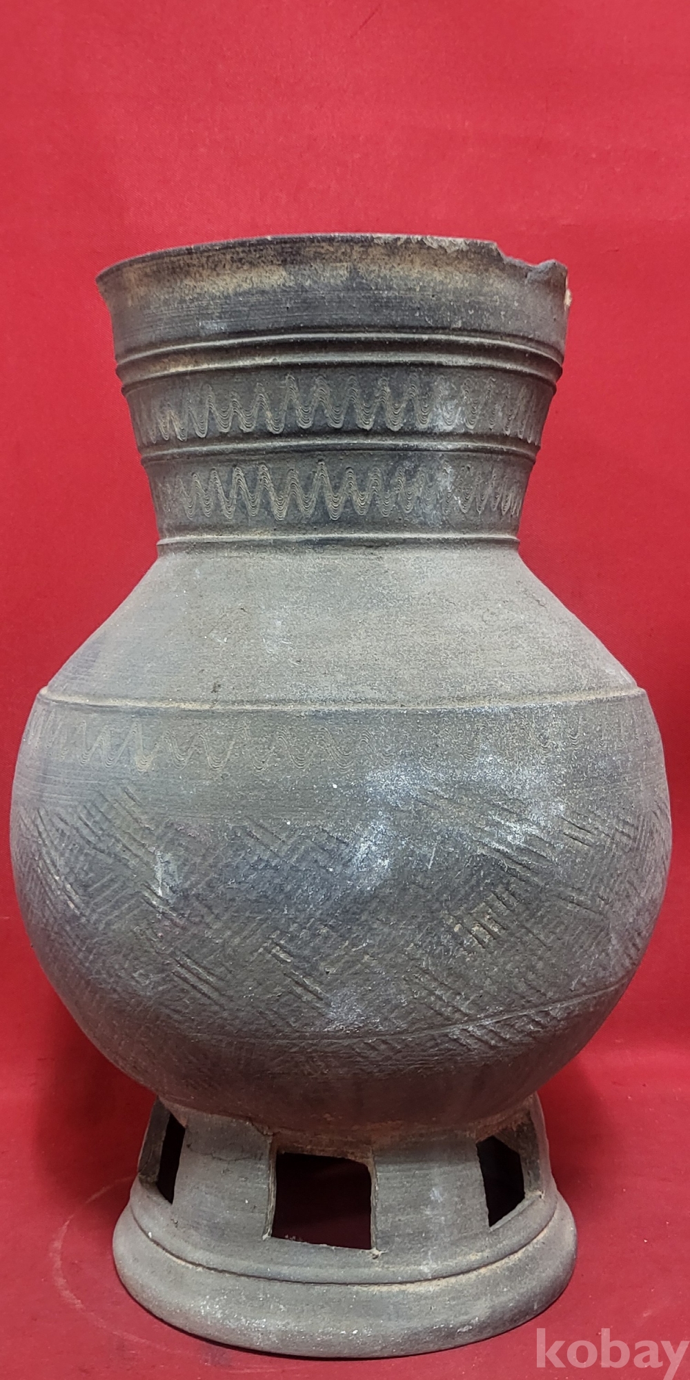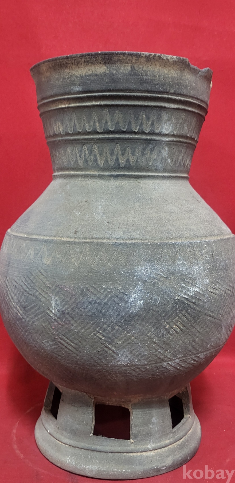신라토기 굽다리 빗살문양 장경호 진품입니다,