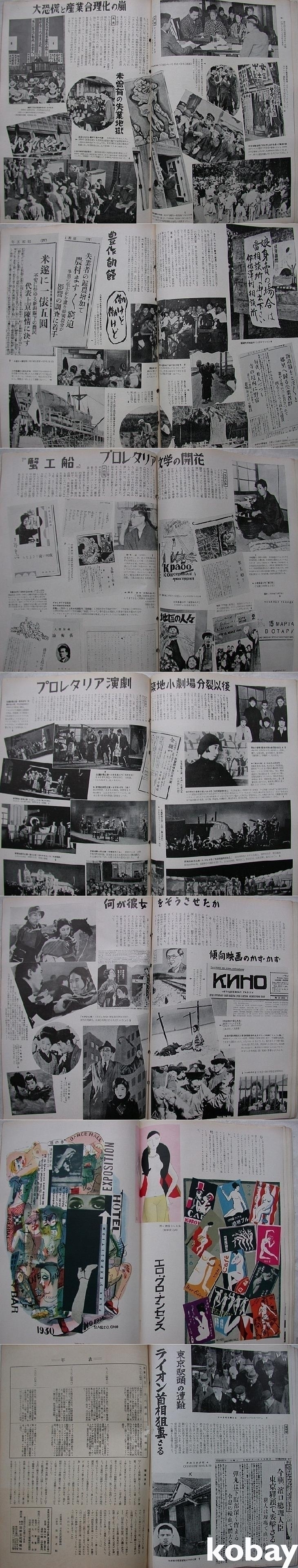 편집은 신문 면편집처럼 크게 제목을 적고 간단한 설명과 함께 사진과 그림을 싣고 설명을 붙이는 방식이다. 목차도 제목에 박스를 치고 '6색쇄(色刷)'라고 표시해놓은 것처럼, 첫 쪽에서 보이는 바와 같이 원색의 도판으로 인쇄하여 수록한 "1923년 - 30년 양화단"이란 제목에 천재적인 야수파들의 작품도판, "エロ·グロ·ナンセンス(에로틱·그로테스크·넌센스)"라는 제목 아래 술집과 호텔 댄스홀 등의 이미지들을 모아놓은 도판 등 2곳은 원색도판을 실었다.