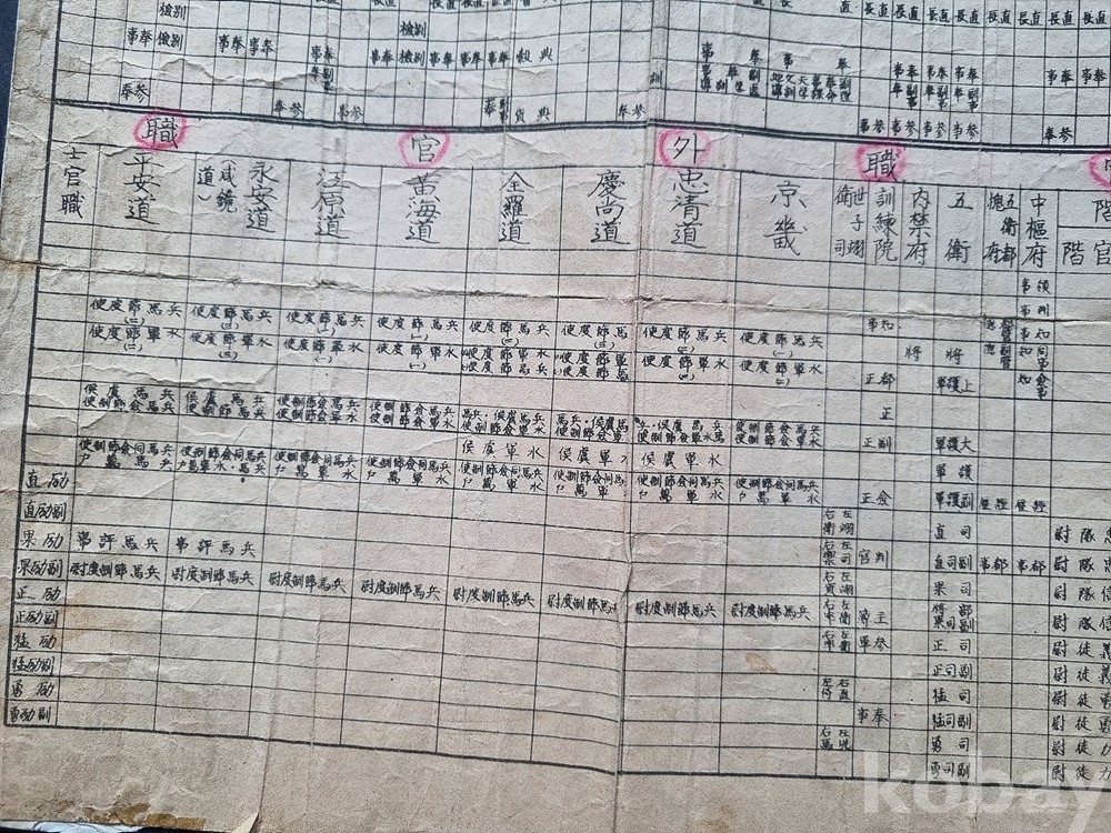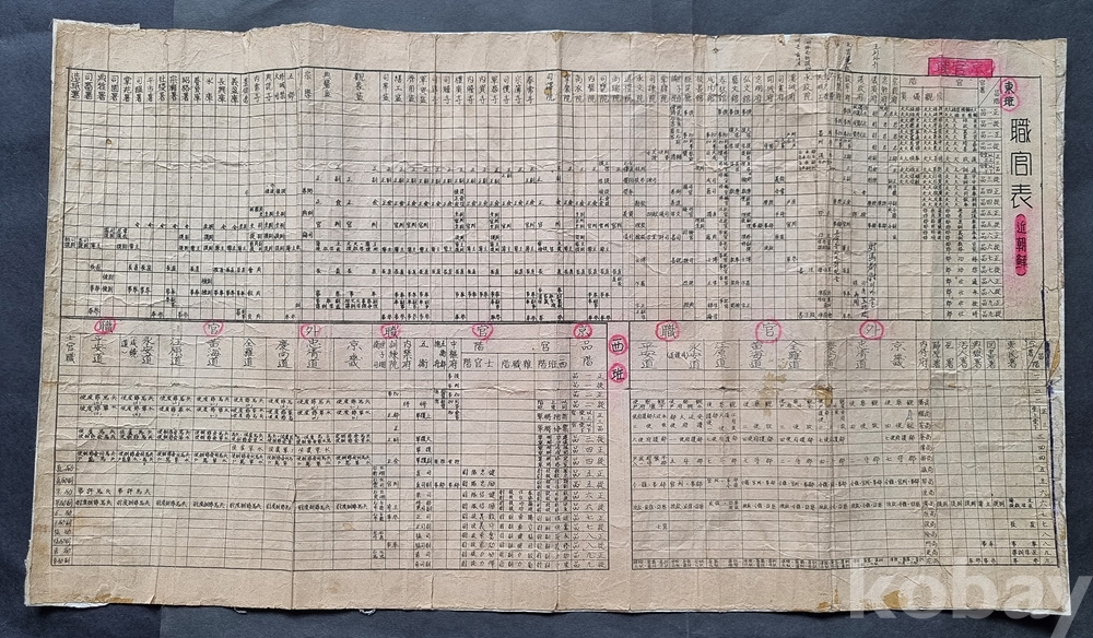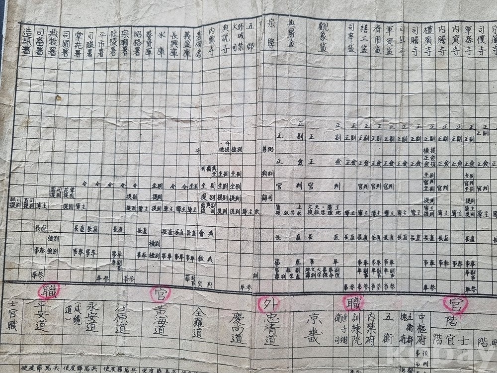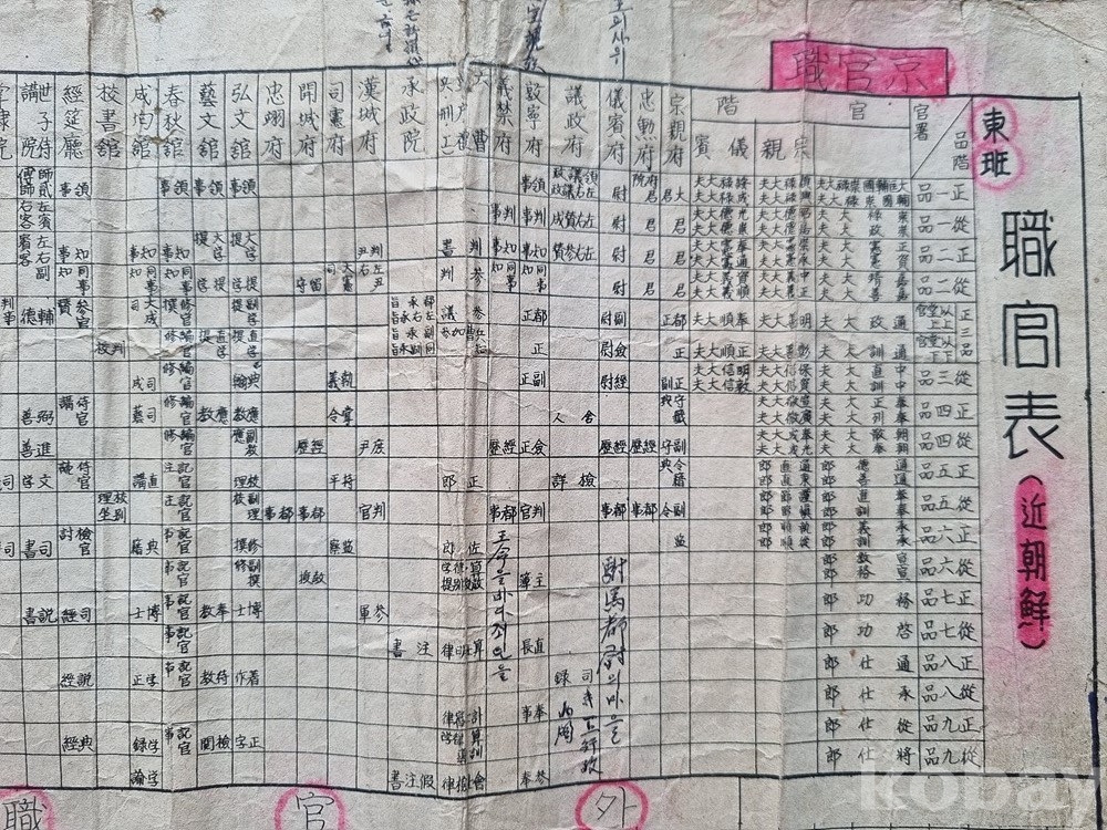 ro1-42 / “직관표(職官表)” 조선 후기~대한제국 시기 정부 관직 체계와 관직 간 서열·구조를 한눈에 보기 위해 만든 관직 도표 (근세신정(近世新政)’ 표기)