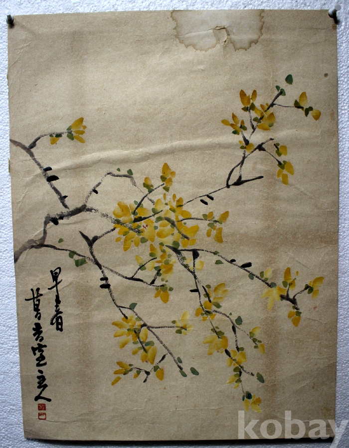 국전 입선작가인 古堂(고당) 박상열의 작품 - 개나리꽃