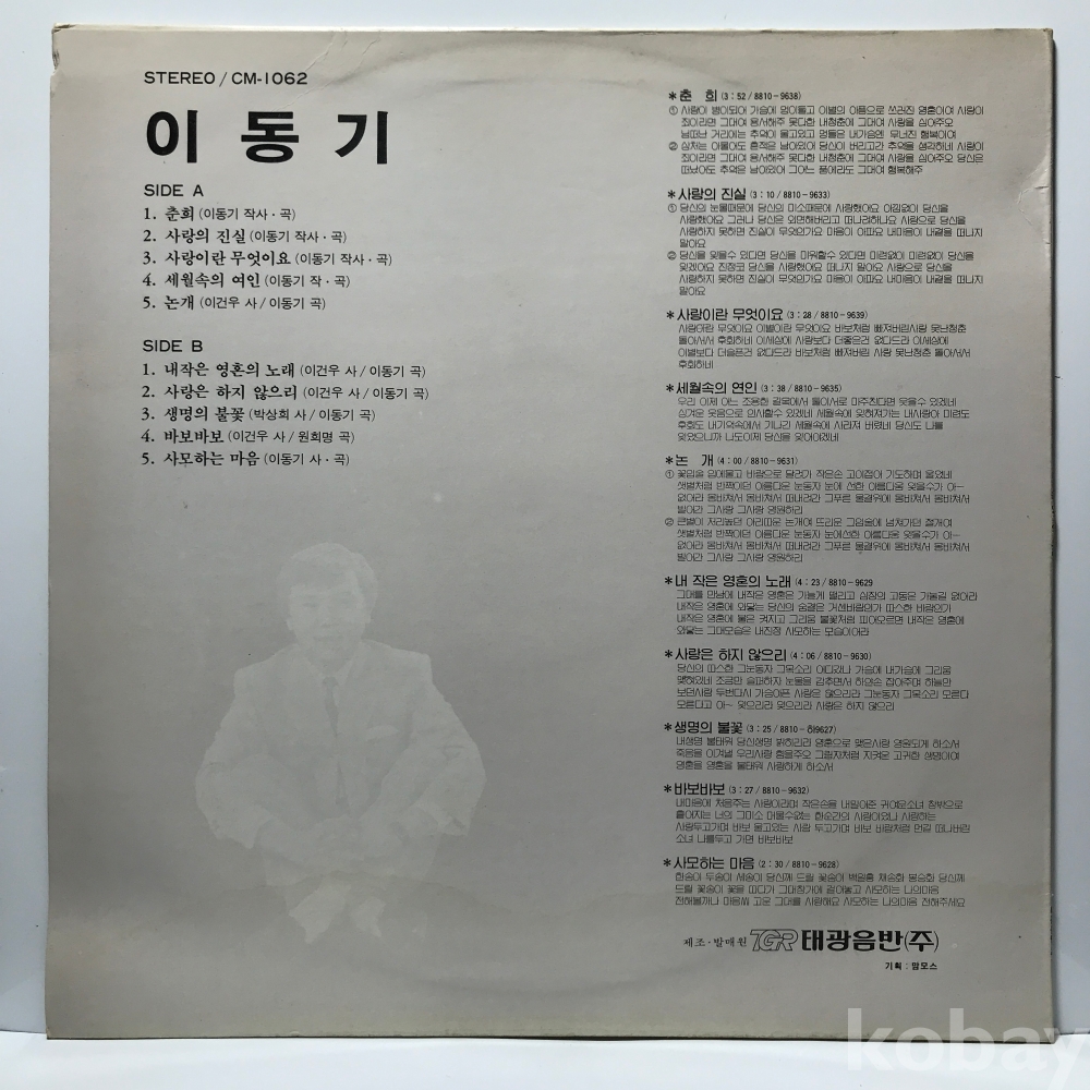 LP 36,550-5 이동기 - 춘희/ 내작은 영혼의 노래 . 태광 자켓 EX 알판 EX+