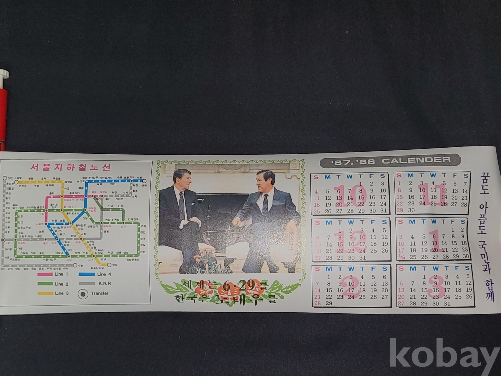 빈티지 세월 감이 느껴지는 희귀한 87년 제작 민주정의당 노태우 달력 볼펜입니다.